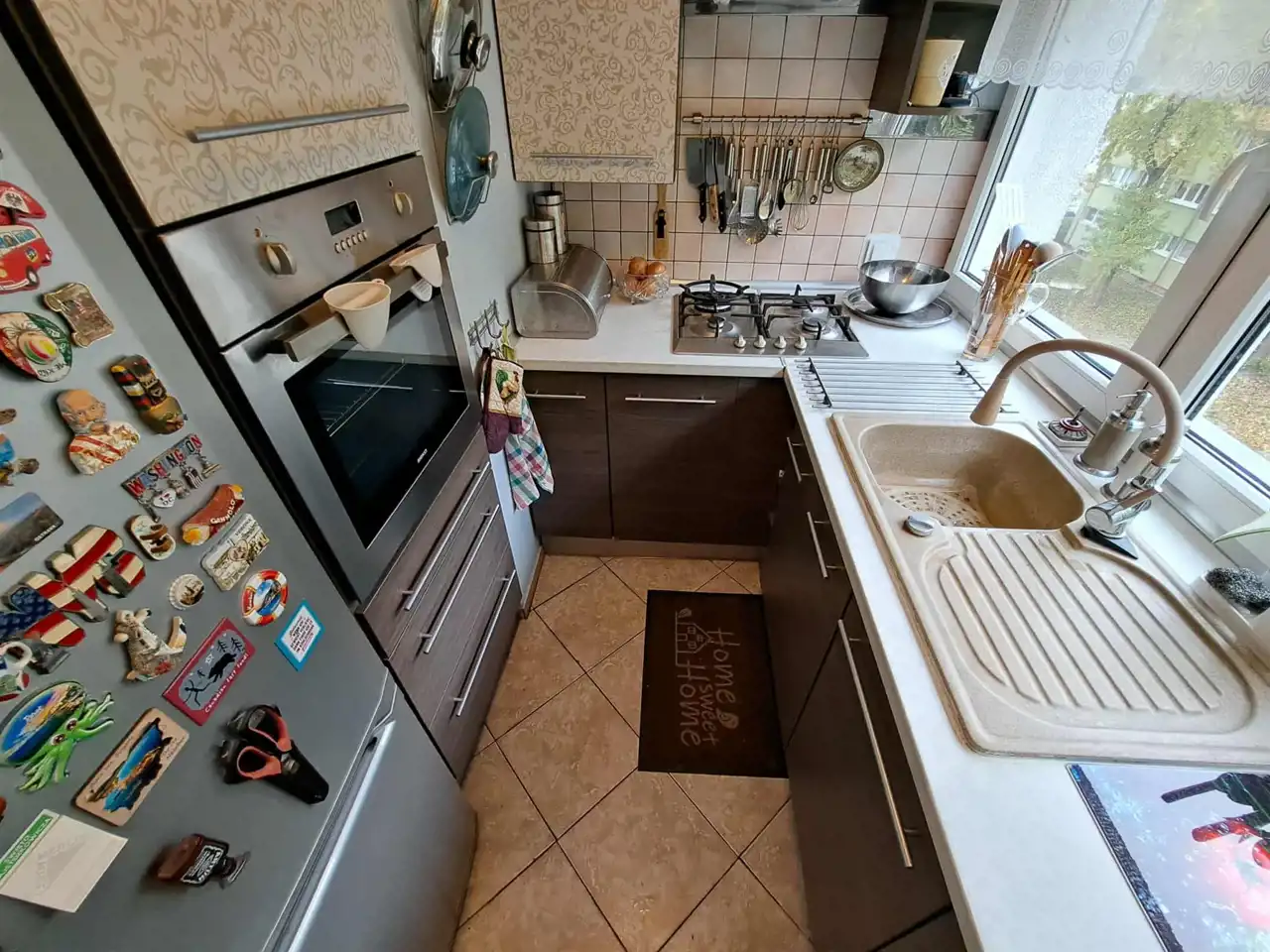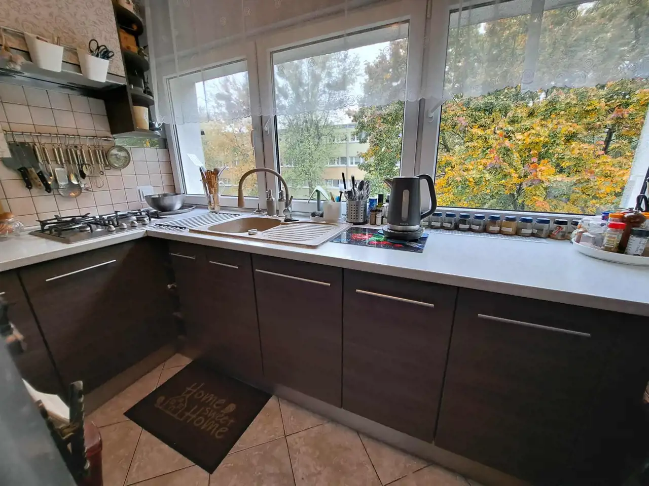 WNĘTRZE: Mieszkanie jest słoneczne i rozkładowe. Pokoje ok. 19 i 11m2, na podłodze panele a na ścianach gładź gipsowa. Kuchnia oddzielna i widna. W kuchni meble pod wymiar i sprzęt AGD w cenie mieszkania. Łazienka i WC w jednym pomieszczeniu, z glazurą i terakotą. W łazience: wanna z parawanem, umywalka z szafką i WC-podwieszany. W przedpokoju jest pakowna szafa z drzwiami przesuwnymi, pawlacz i szafka na buty.
