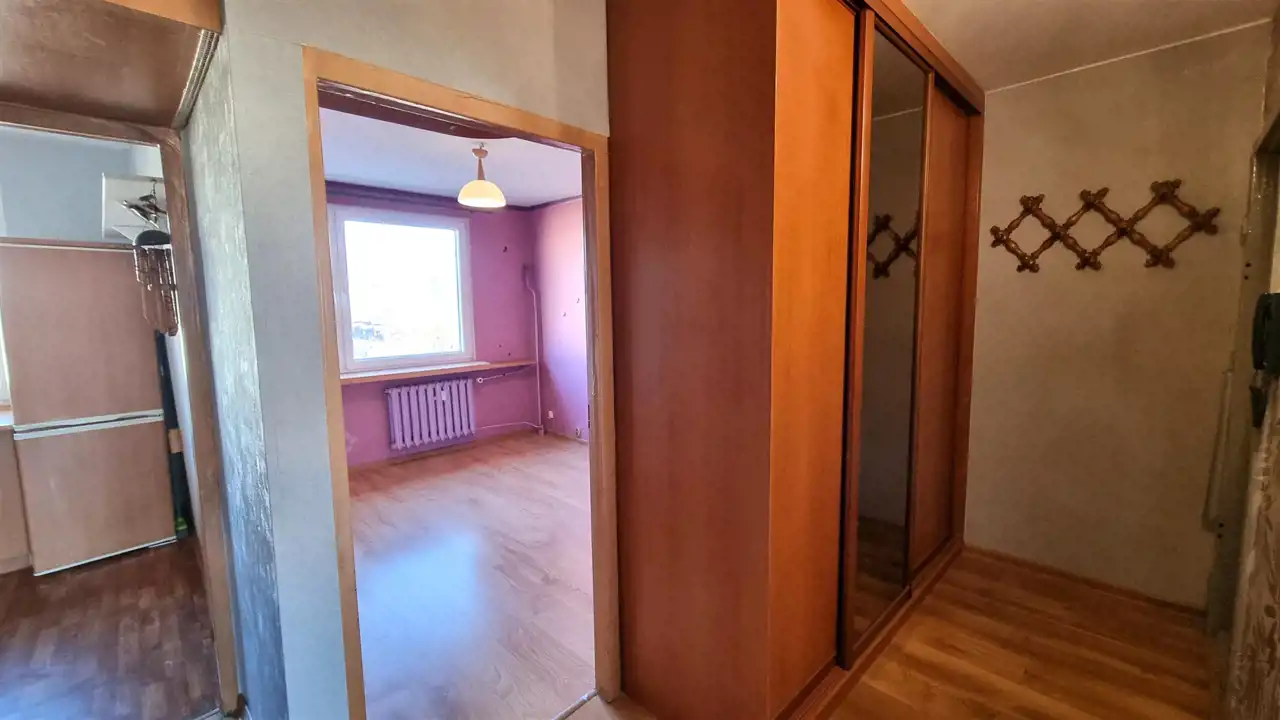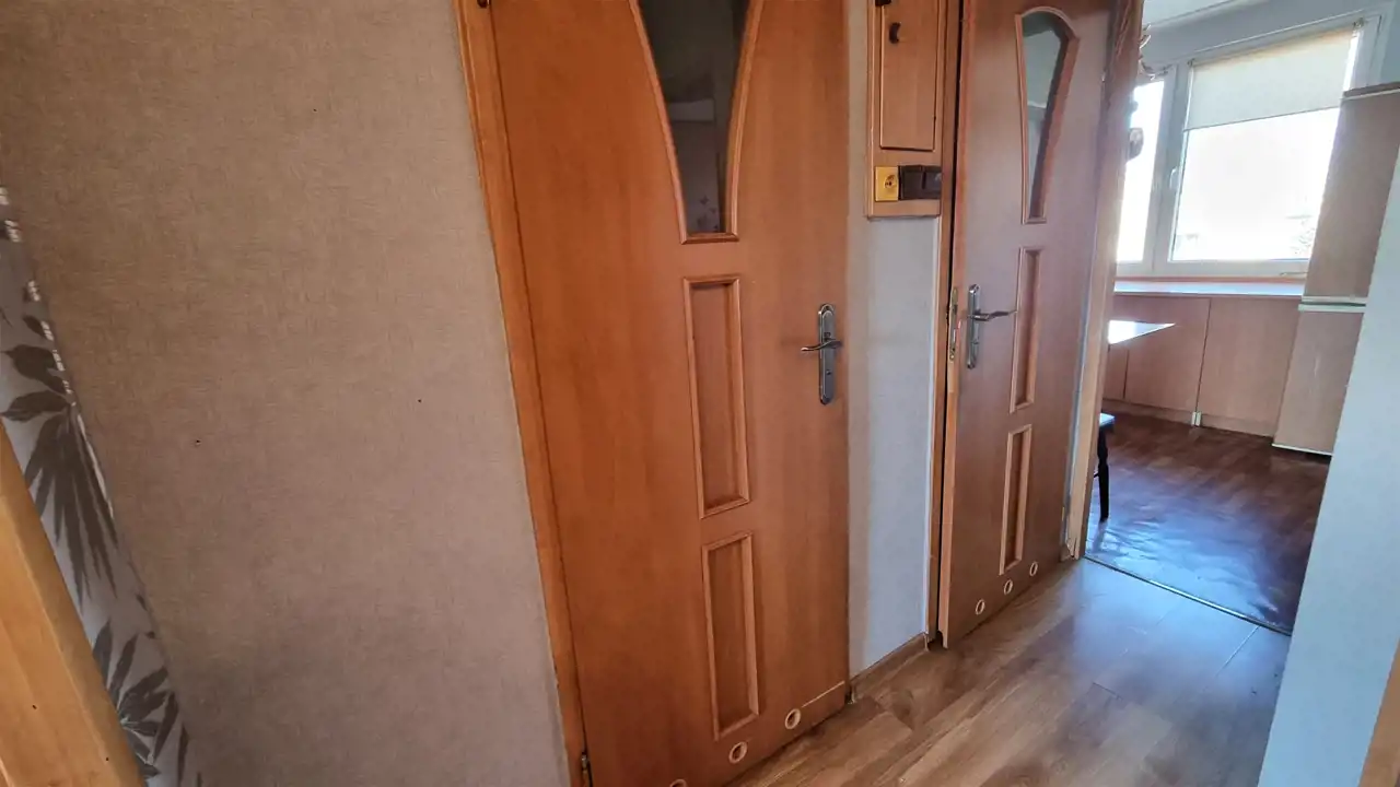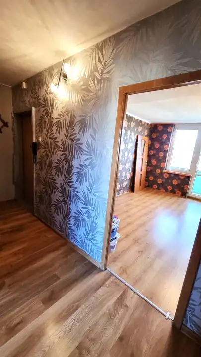 HOLL: podłoga panele, ściany tapeta, duża SZAFA GARDEROBA w zabudowie