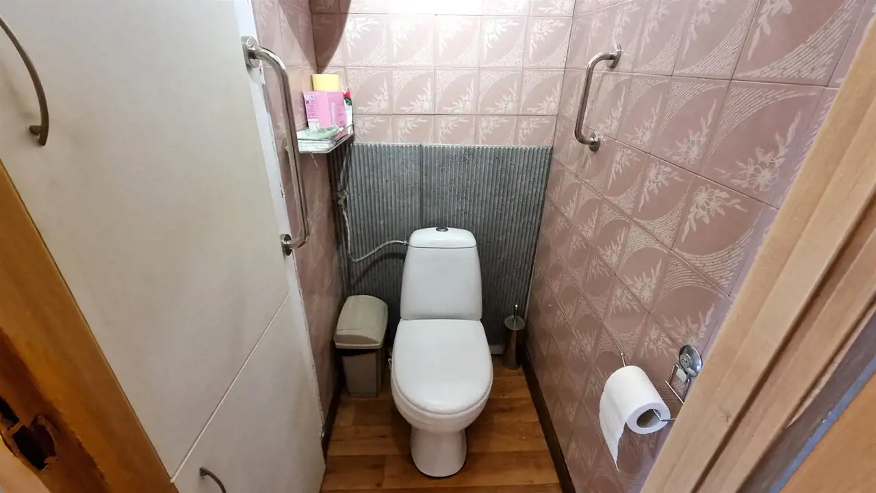 WC osobno, z szafką we wnęce i sedesem - wymaga remontu