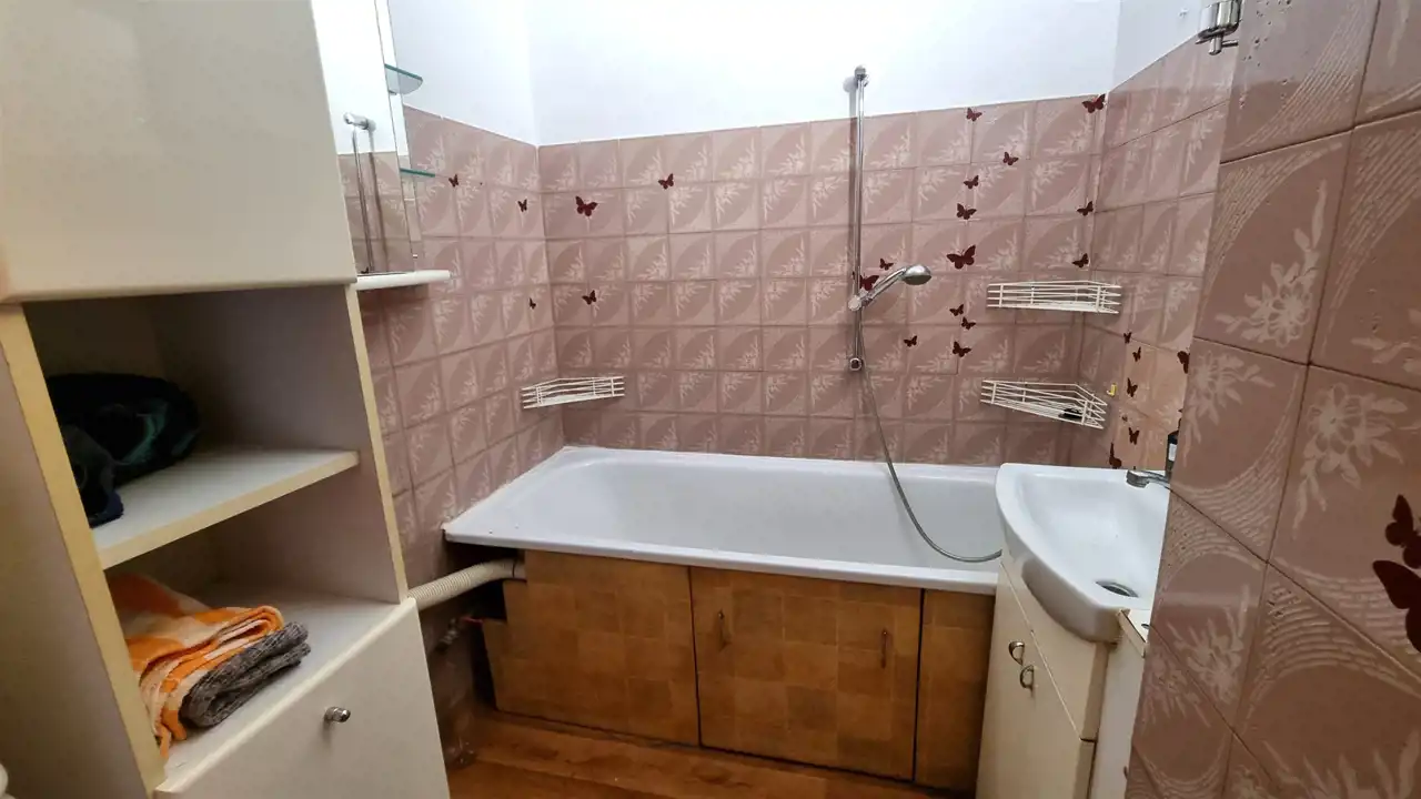ŁAZIENKA z WANNĄ, glazura starego typu, umywalka, miejsce na pralkę - łzienka do remontu