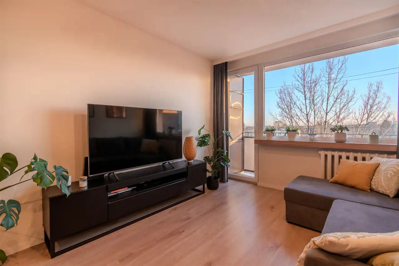 Wyobraź sobie sobotni poranek. Budzisz się w jasnej sypialni, robisz kawę w nowoczesnej kuchni i wychodzisz na balkon. Spójrz na zdjęcie: przed Tobą przestrzeń, oddech i zieleniejąca z każdym dniem panorama Bałut. Wiosna właśnie puka do okien – drzewa na dole zaczynają pokrywać się pąkami, obiecując intymność i zieleń za kilka tygodni. 6. piętro gwarantuje, że nikt nie zagląda Ci w talerz, a Ty masz poczucie wolności, którego brakuje na niższych kondygnacjach. To mieszkanie zostało zaprojektowane z myślą o maksymalnym wykorzystaniu światła i przestrzeni.