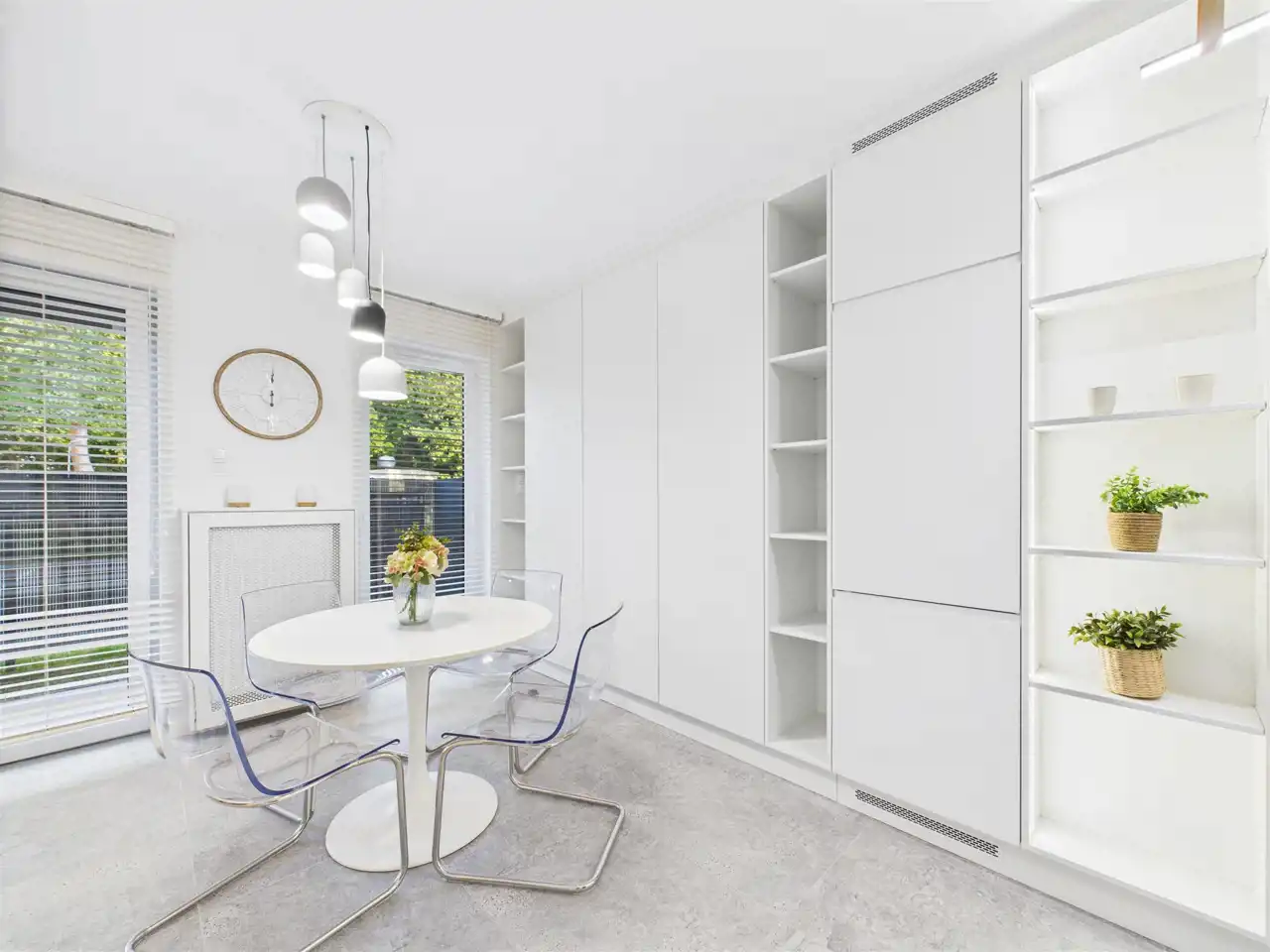 Elegancja spotyka się tu z funkcjonalnością – meble i stolarka wykonane na wymiar tworzą spójną, stylową przestrzeń, a liczne szafy w zabudowie zapewniają mnóstwo miejsca do przechowywania. Wnętrze jest w pełni umeblowane i wyposażone w nowoczesne, nowe AGD, co gwarantuje komfort codziennego użytkowania.