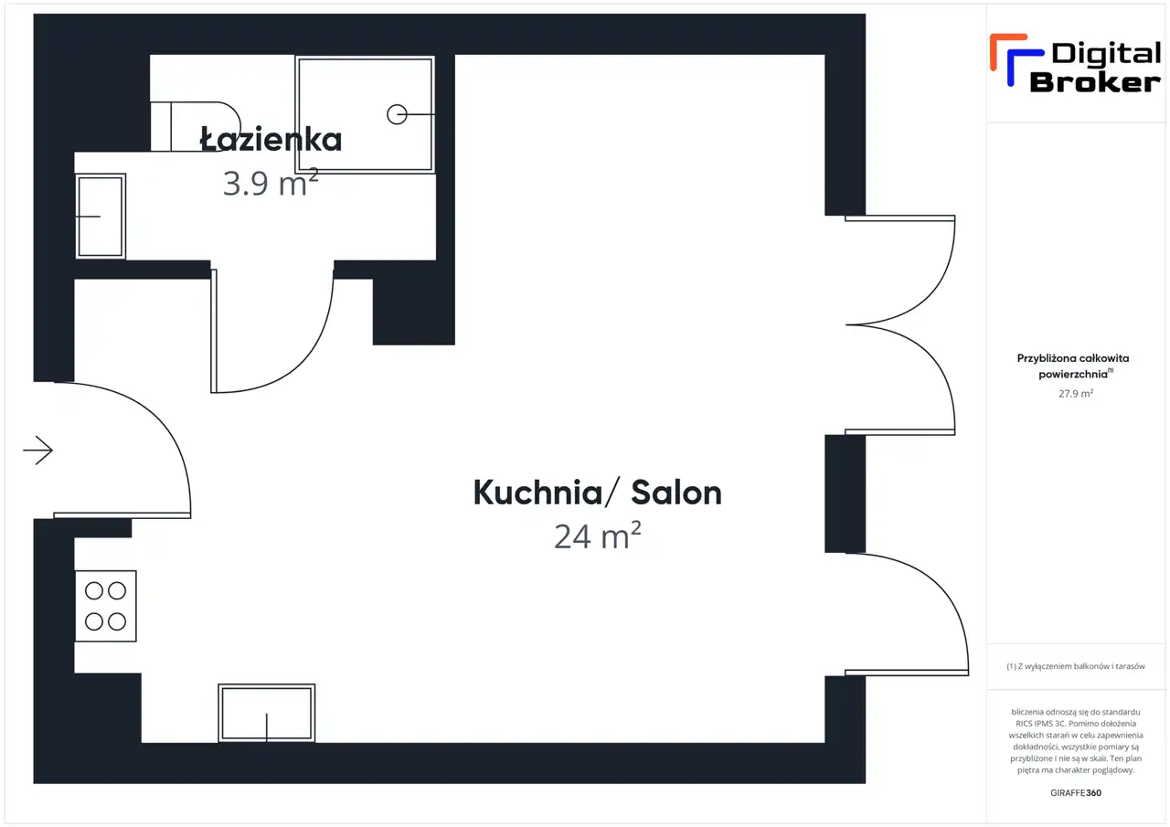 - Charakterystyka mieszkania 27.9 m2, 1 pokój