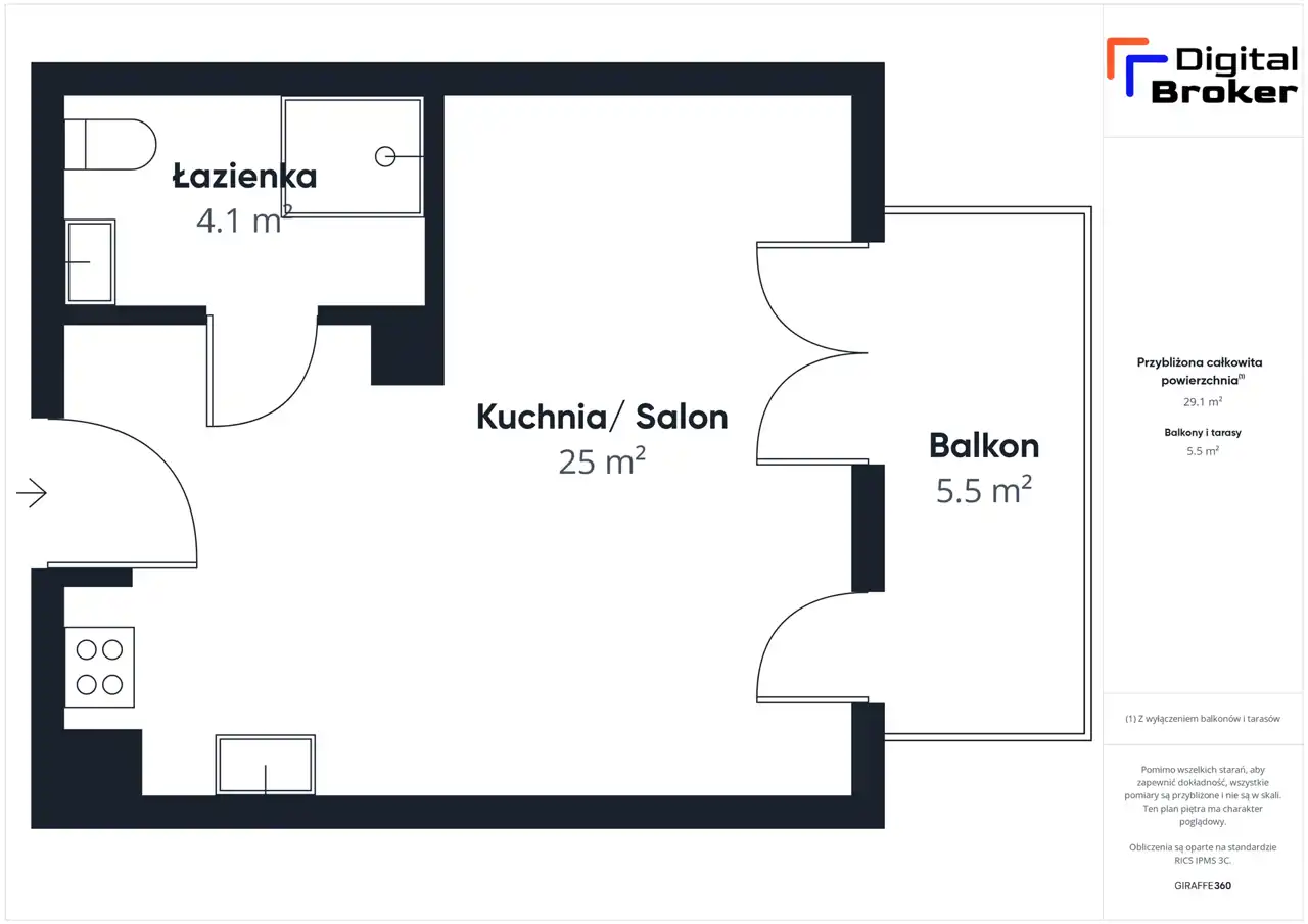 - Charakterystyka mieszkania 27.69 m2, 1 pokój