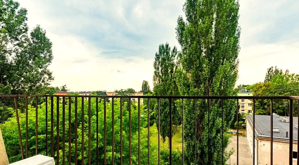 Z balkonu roztacza się piękny widok na osiedlową zieleń.