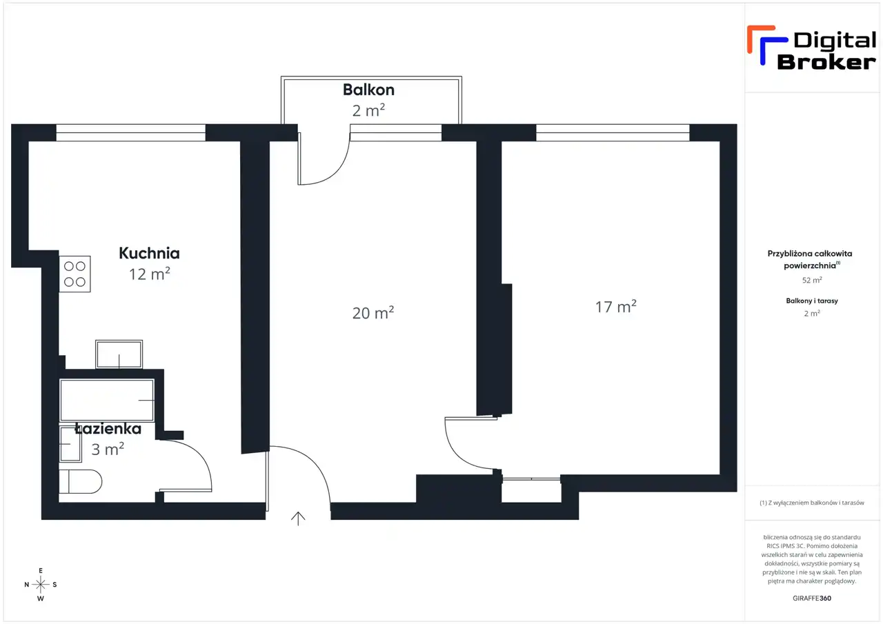- Charakterystyka mieszkania 51.89 m2, 2 pokoje
