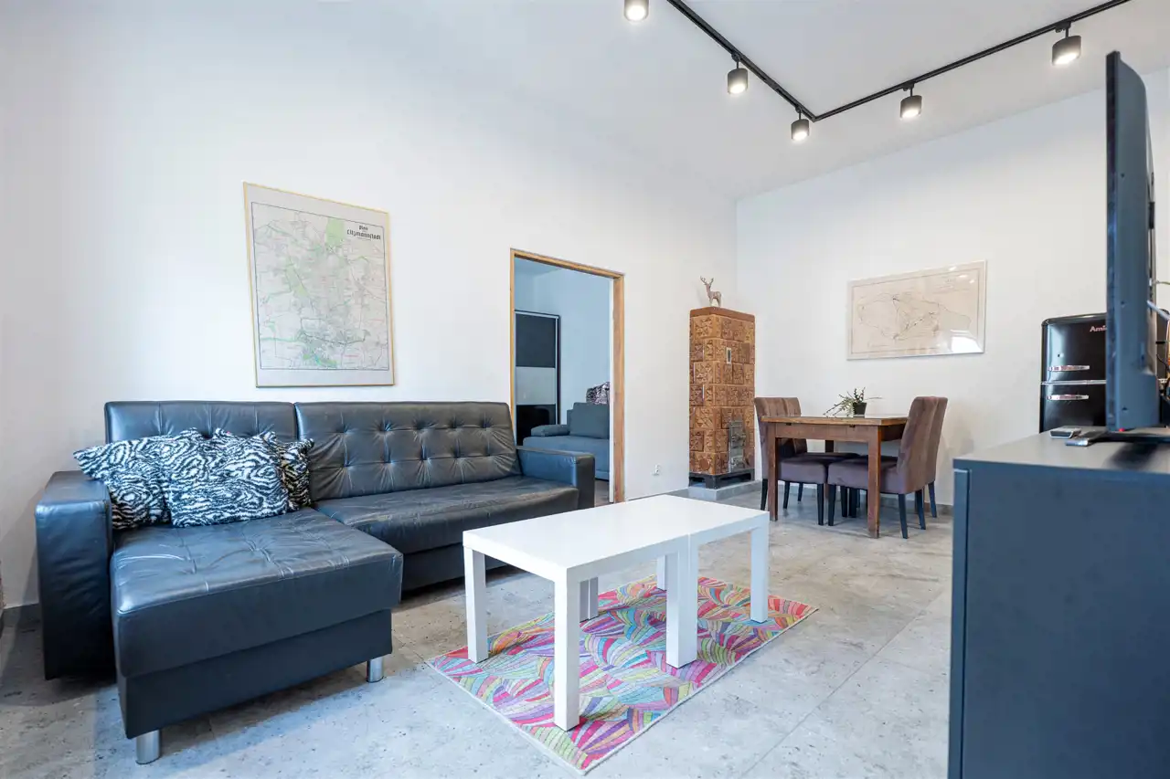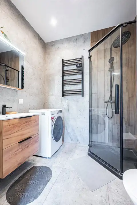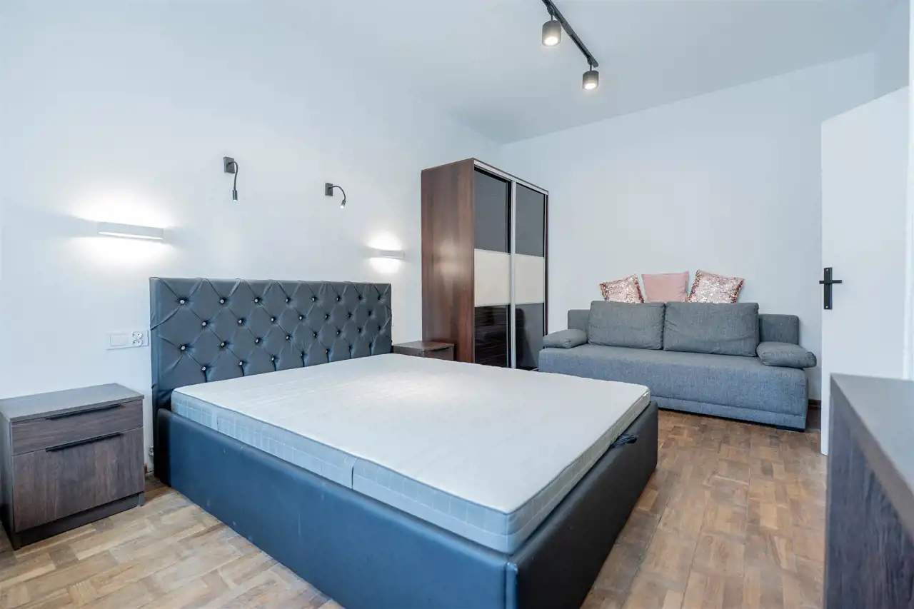 Wystrój mieszkania, widoczny na załączonych zdjęciach, łączy nowoczesność z akcentami vintage – idealny balans dla osób ceniących design z charakterem.