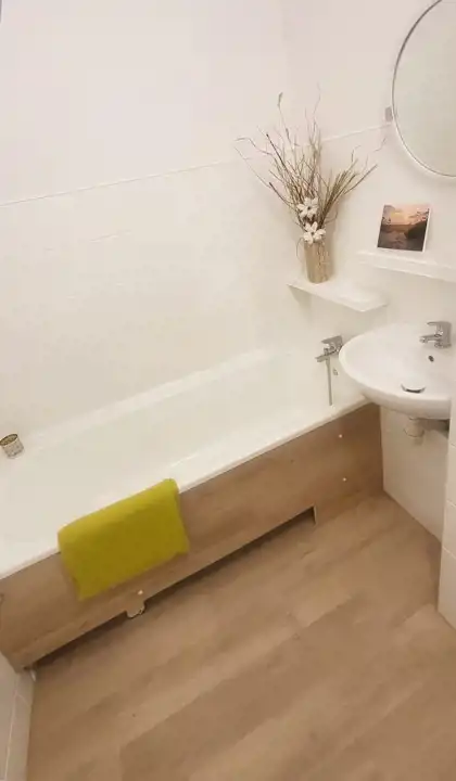 - W pokojach na podłodze wykładzina parkiet, w łazience, wc i przedpokoju terakota, w kuchni panele.
