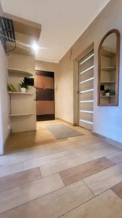 Mieszkanie składa się z trzech rozkładowych pokoi, oddzielnej, widnej kuchni, łazienki, wc i przedpokoju.