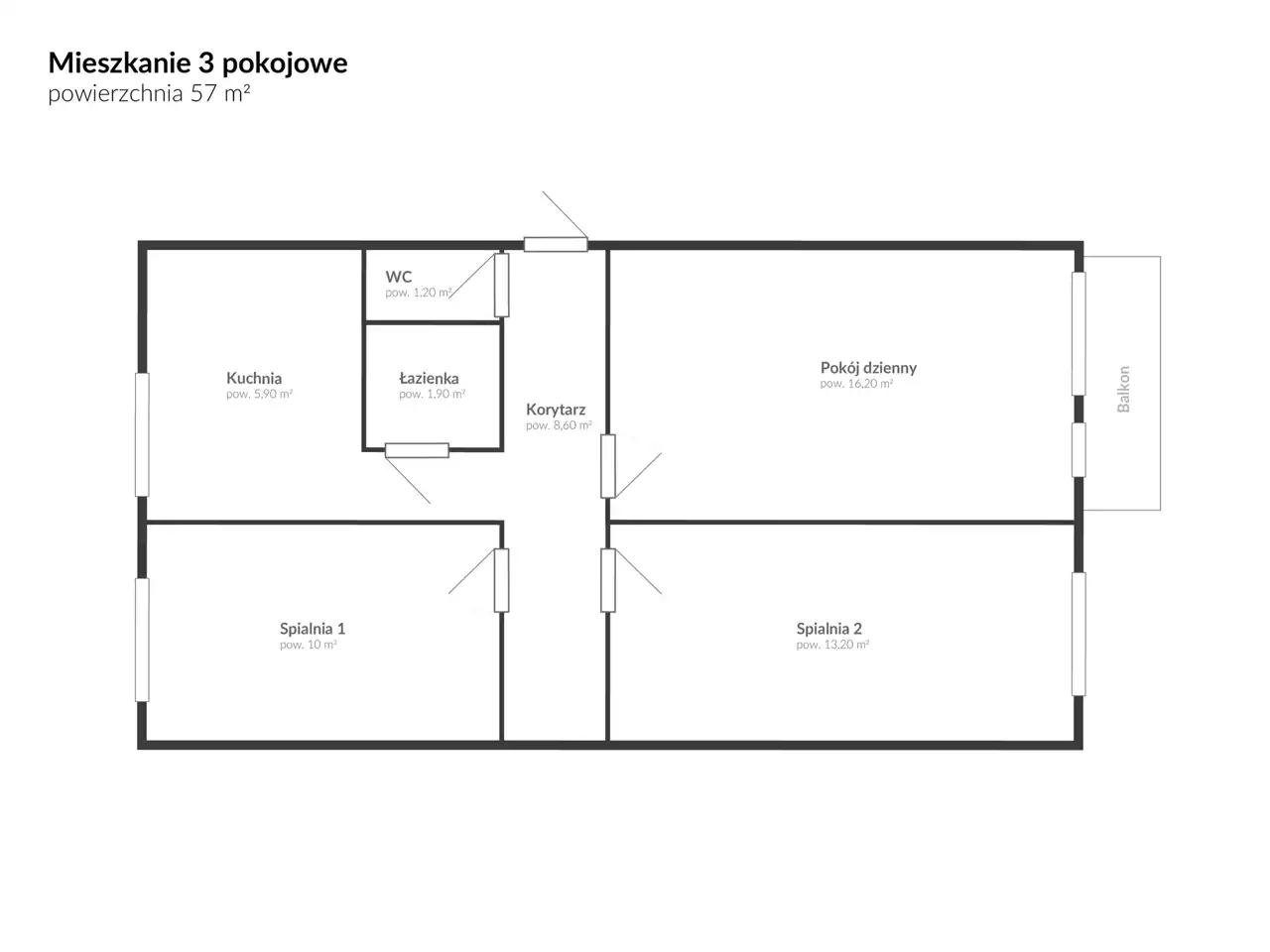 - Charakterystyka mieszkania 57 m2, 3 pokoje