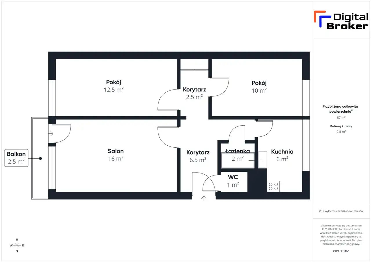- Charakterystyka mieszkania 57 m2, 3 pokoje