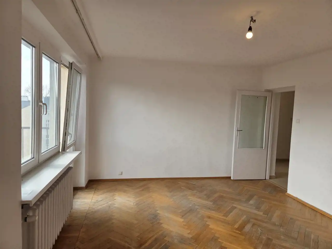 Mieszkanie jest w pełni rozkładowe i przestrzenne. W pokojach na podłogach parkiet wymagający wycyklinowania, na ścianach i sufitach świeżo odmalowana farba. W przedpokoju istnieje przestrzeń na szafę w zabudowie. Łazienka wyposażona w prysznic, umywalkę i wc. Mieszkanie wymaga remontu lub odświeżenia w zależności od potrzeb Kupującego.