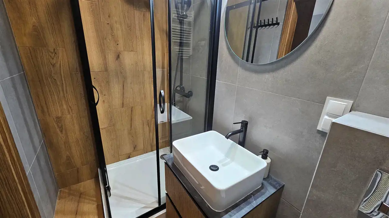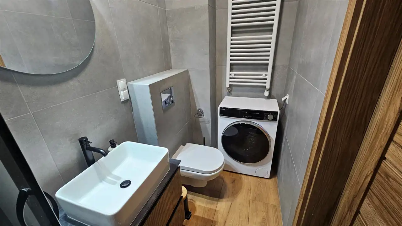 - łazienki razem wc (kabina prysznicowa, pralka),