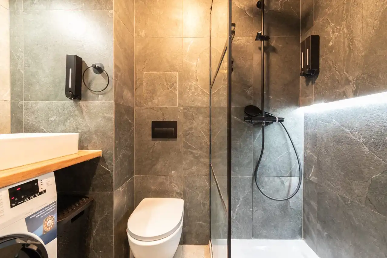 - łazienka z dużą, komfortową kabiną prysznicową.