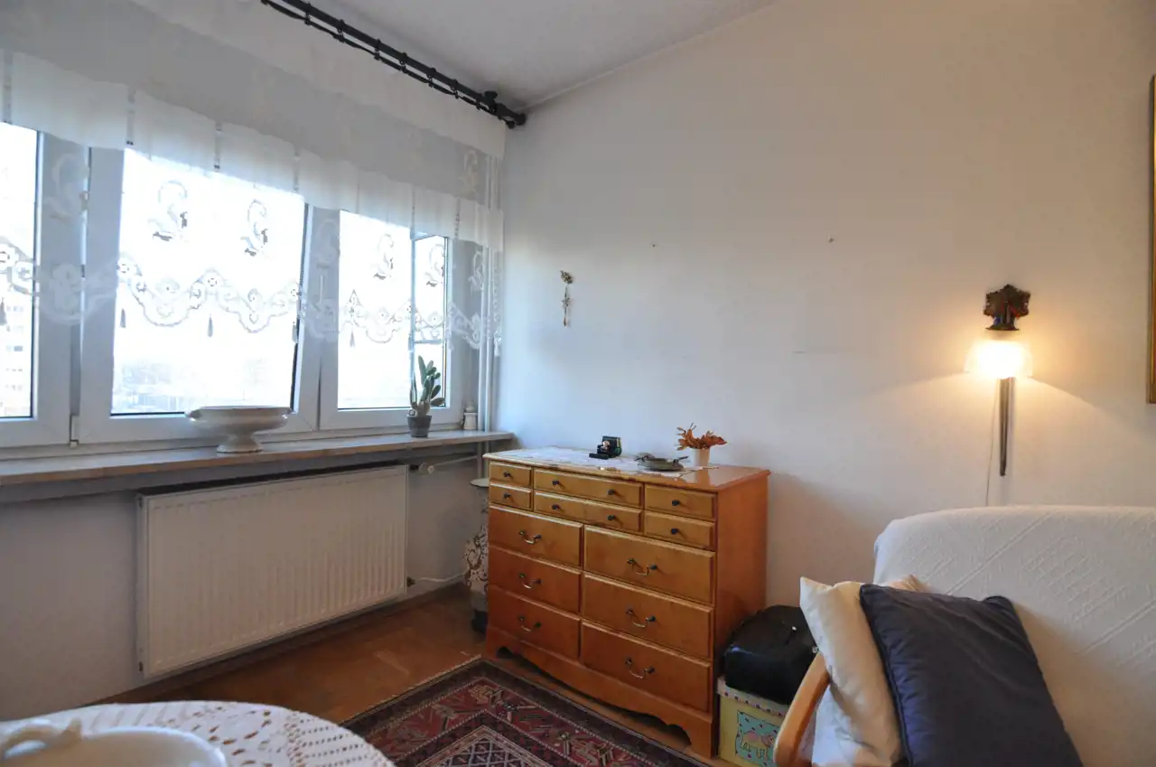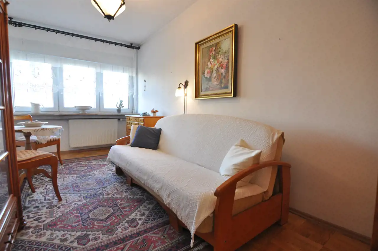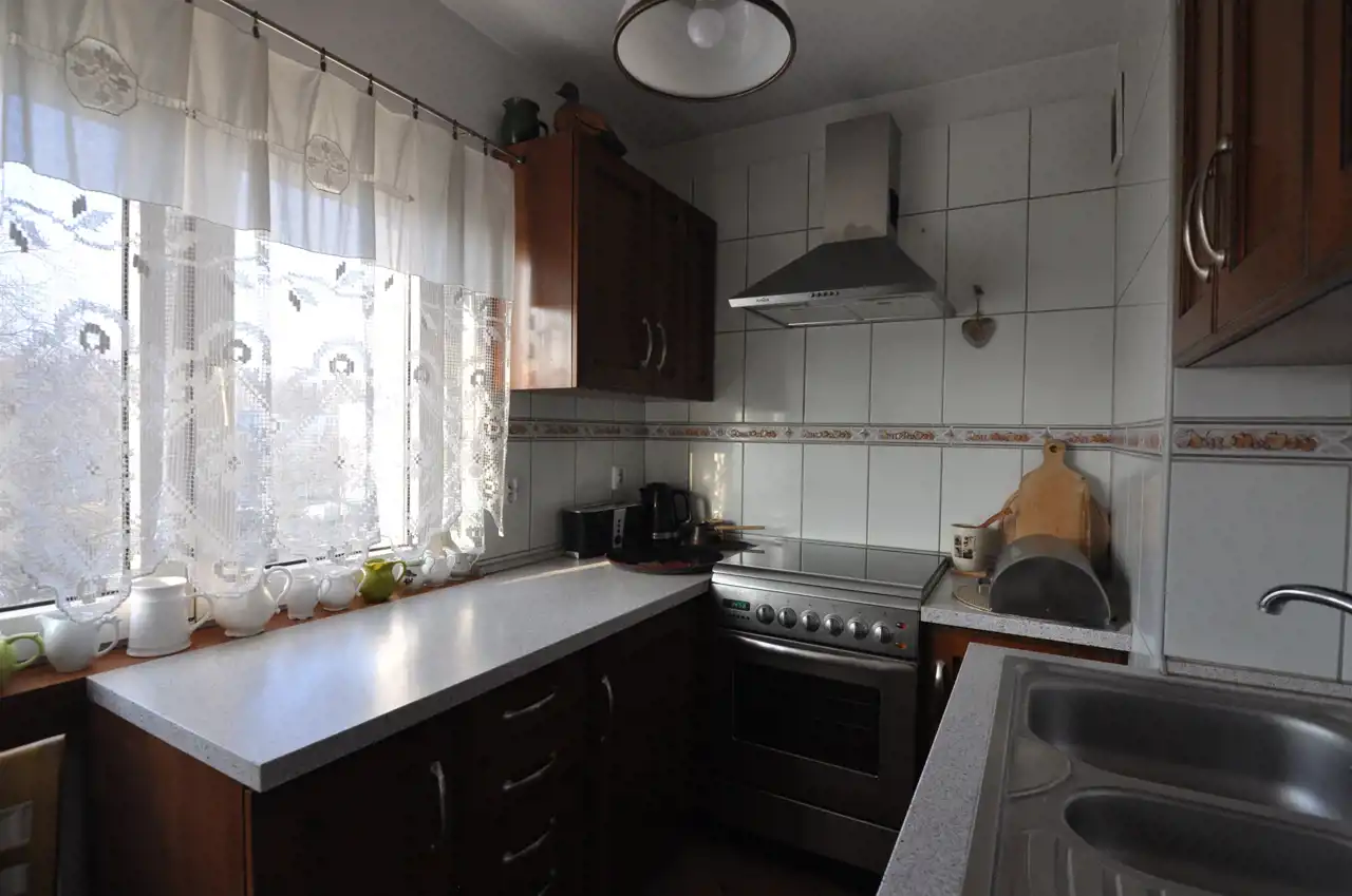 Wnętrze mieszkania jest w stanie do zamieszkania, w pełni wyposażone w sprzęty AGD oraz meble kuchenne w zabudowie. Okna PCV gwarantują dobrą izolację akustyczną i cieplną. Wymienione grzejniki, w korytarzu i salonie terakota a w sypialniach parkiet.