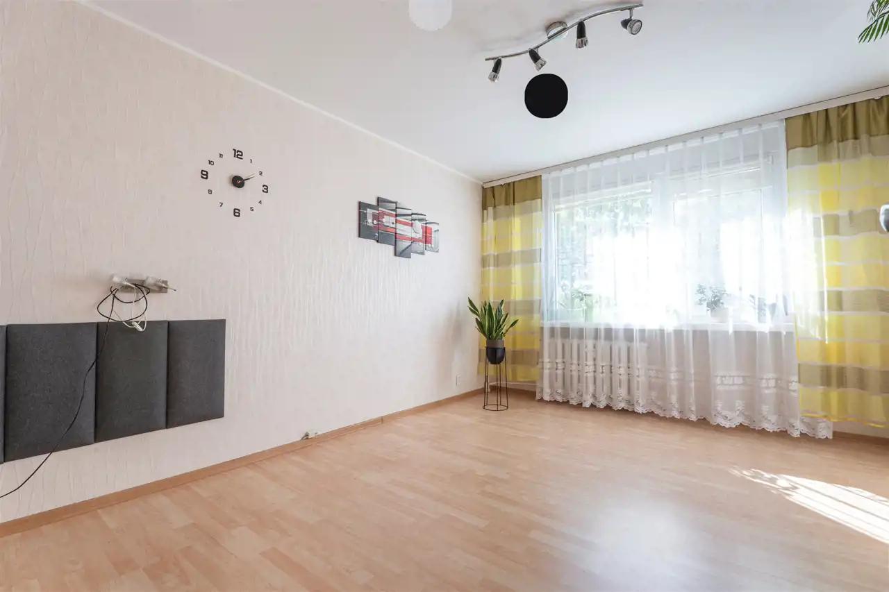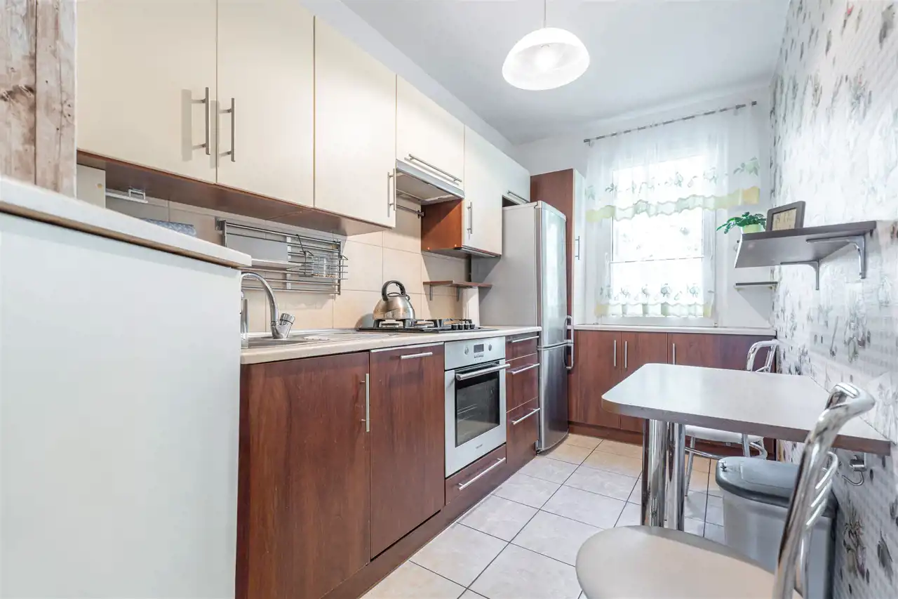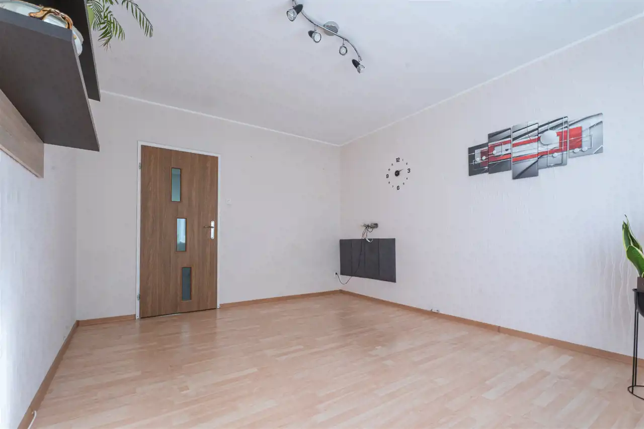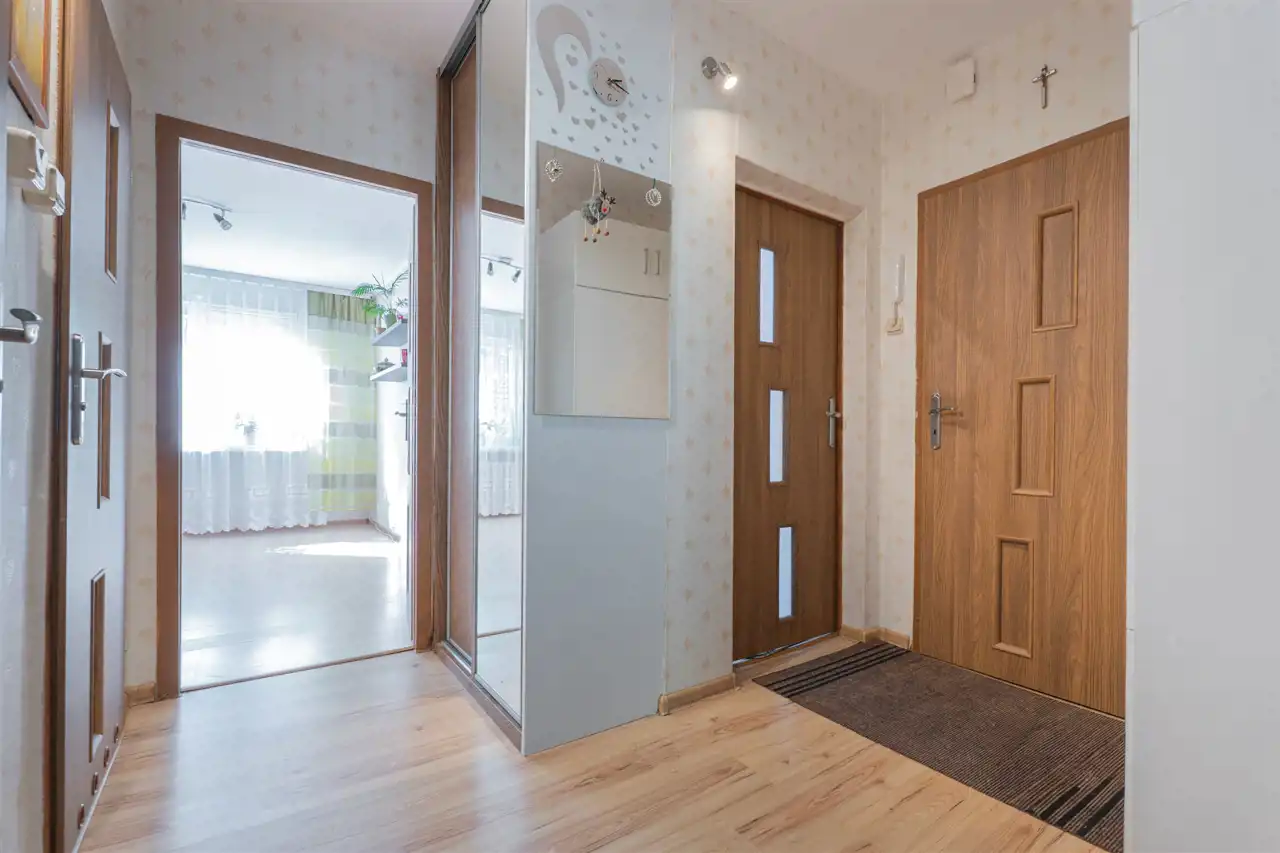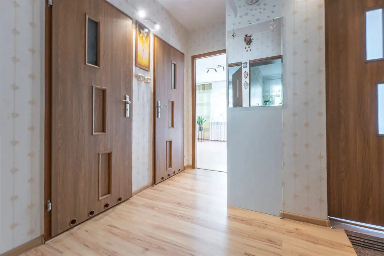 Mieszkanie jest odświeżone — w pokojach położone panele podłogowe, instalacje częściowo wymienione.