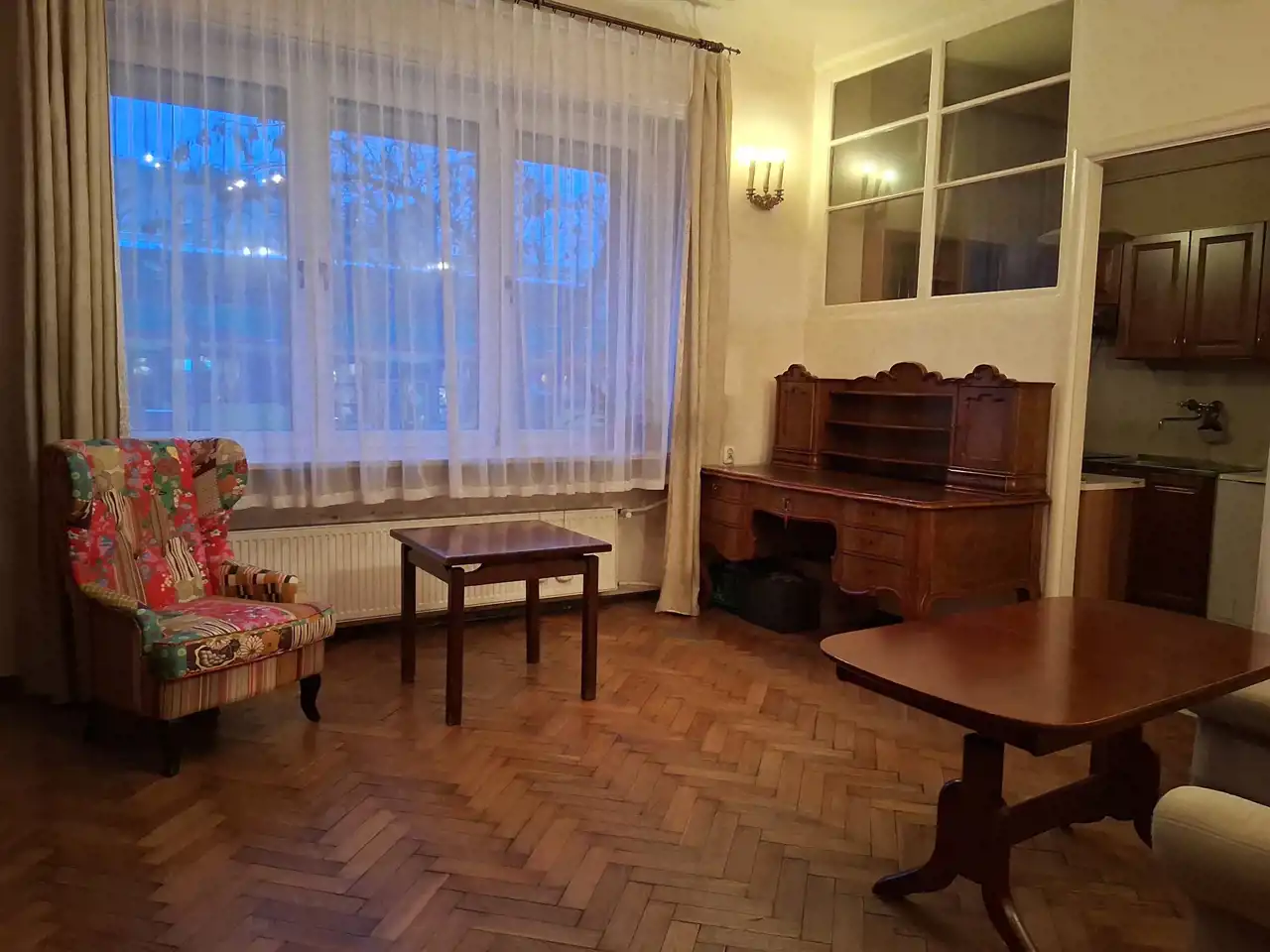 Lokal do remontu, ale z zachowanym oryginalnym parkietem i częściowo stolarką drzwiową - do renowacji.
