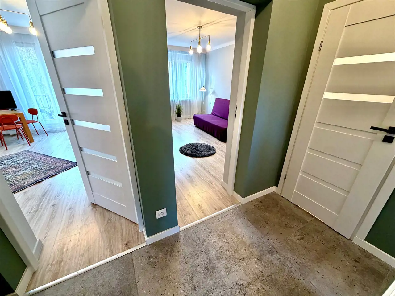 Wygodne i przestronne mieszkanie po generalnym remoncie na Kozinach. Zagospodarowane osiedle - place zabaw, parkingi, sklepy. Jest stąd wygodny i szybki dojazd w każdy punkt miasta, a dodatkowo szybki i prosty wyjazd na autostradę A2 i drogę ekspresową S14. Blisko Park na Zdrowiu - przechodząc kładką nad torami dojdziemy do niego w kilkanaście minut.
