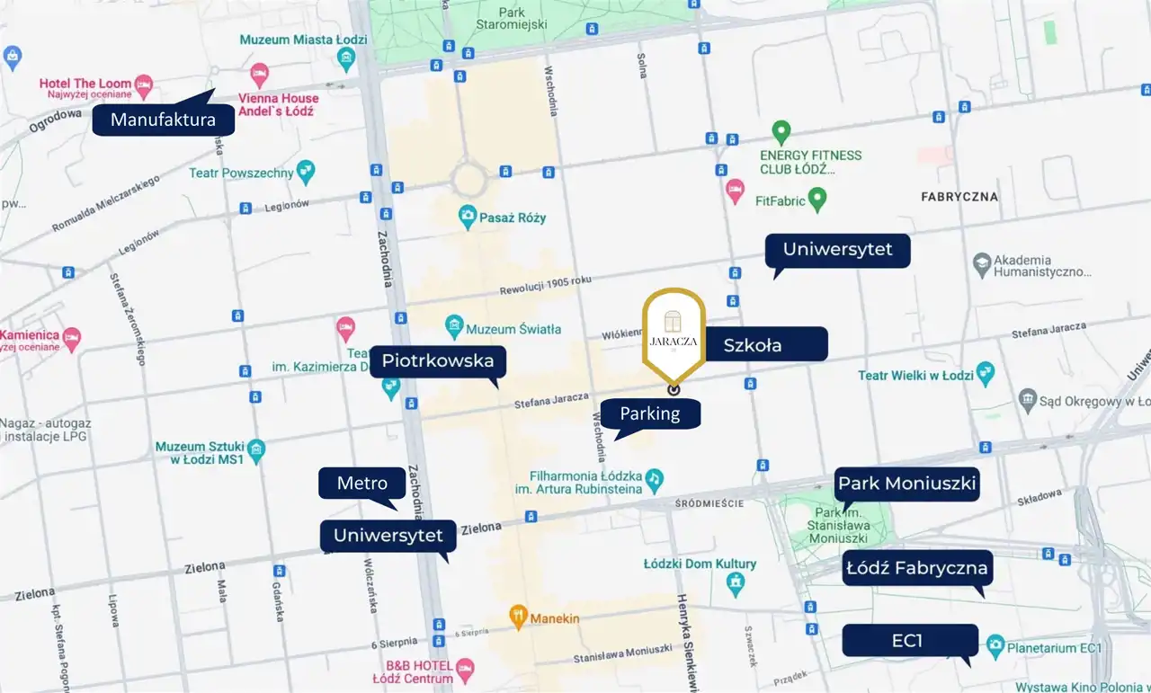 Tuż przy życiowej arterii miasta - zaledwie 289 kroków od pulsującej ulicy Piotrkowskiej - odkryjesz architektoniczną perłę. Codzienne zakupy, kultura i rozrywka w zasięgu ręki. Nieopodal skwer z urokliwą fontanną i teatr dodają tej lokalizacji miejskiego szyku.