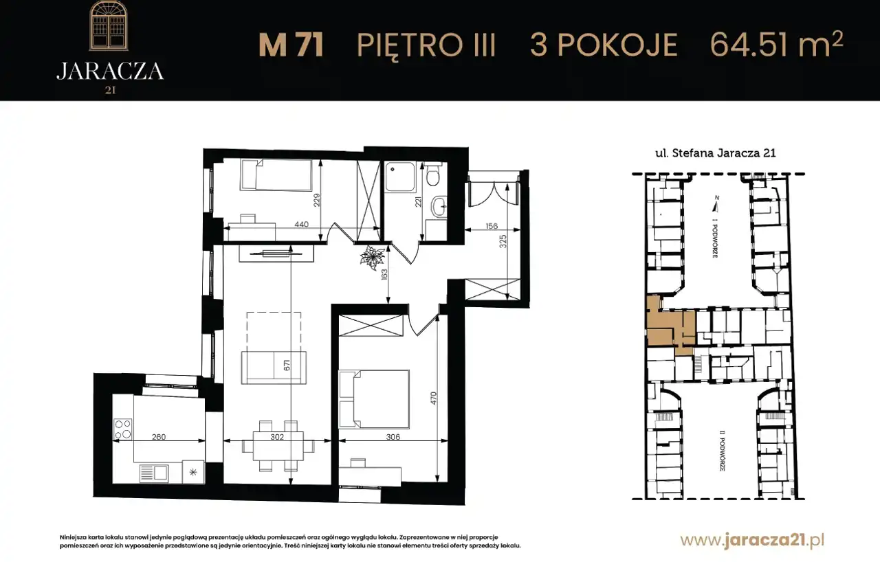 - Charakterystyka mieszkania 64.51 m2, 3 pokoje