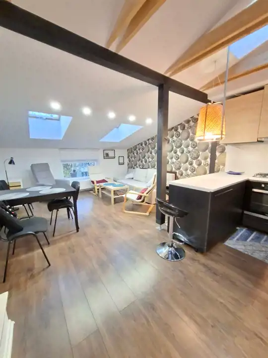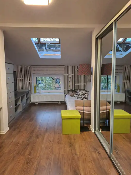 Całe mieszkanie jest fantastycznie doświetlone pięknymi oknami dachowymi.