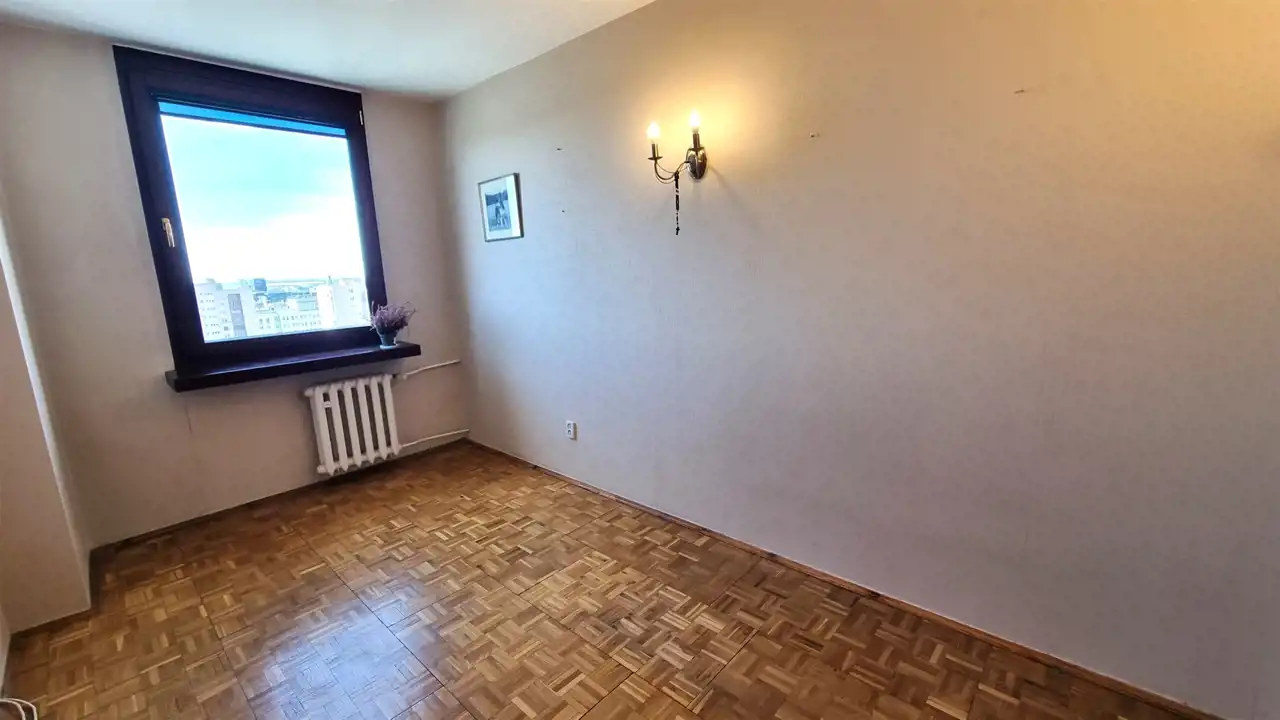II POKÓJ : podłoga mozaika - parkiet, ściany gładzie gipsowe, BALKON z pięknym widokiem na panoramę miasta, okna nowego typu - drewniane z roletami okiennymi, nowoczesne drzwi drewniane z przeszkleniami