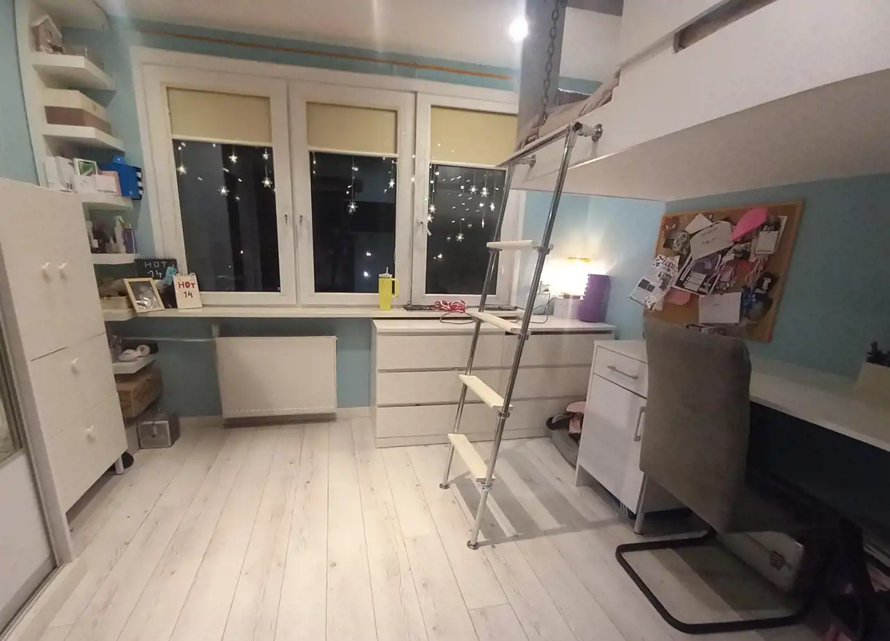 Przestronne i zadbane mieszkanie na sprzedaż na łódzkiej Górnej, zaledwie kilka minut od stacji PKP Łódź Chojny. Lokal mieści się na 5. piętrze wieżowca po termomodernizacji, w zadbanym i bezpiecznym otoczeniu – monitoring obejmuje zarówno teren przed budynkiem, jak i klatkę schodową.