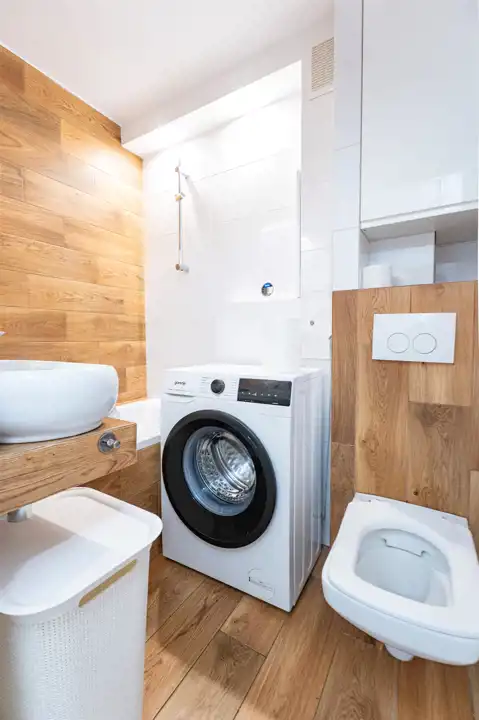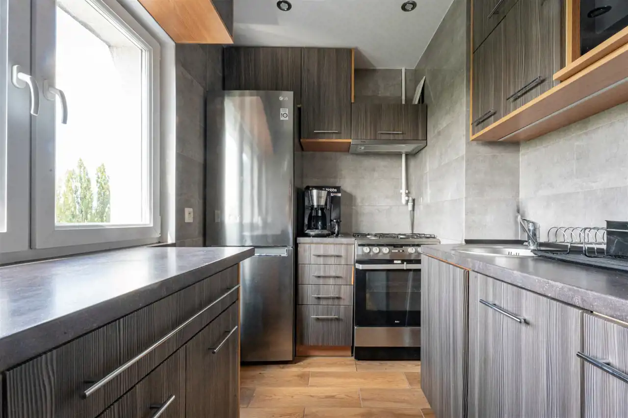 - Kuchnia w pełni wyposażona, włącznie ze zmywarką, lodówko zamrażarka, piekarnikiem.