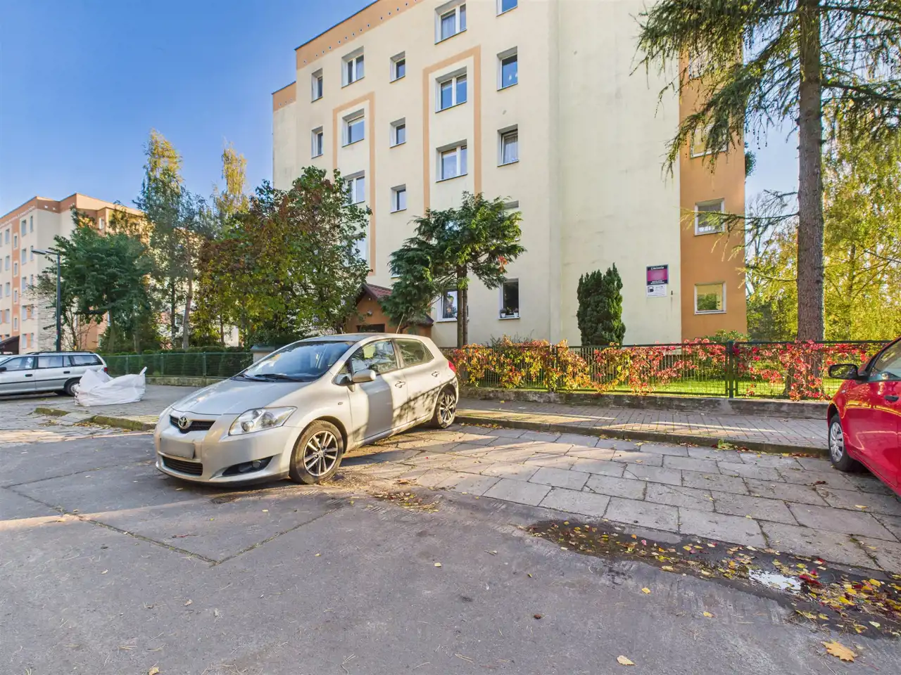 W sąsiedztwie budynku dostępne są ogólnodostępne miejsca parkingowe. Okolica jest spokojna, zielona i bardzo dobrze utrzymana.