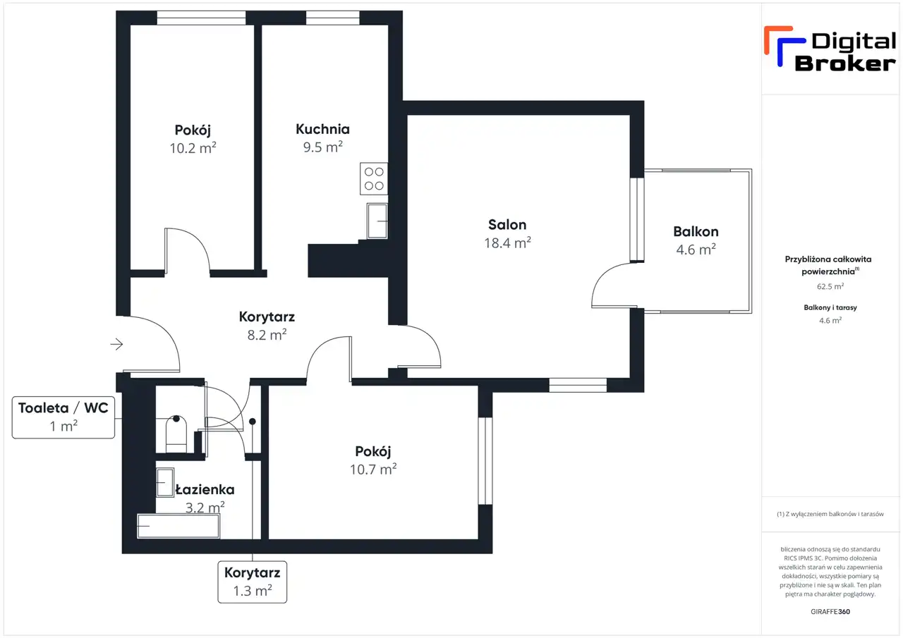 - Charakterystyka mieszkania 62.12 m2, 3 pokoje