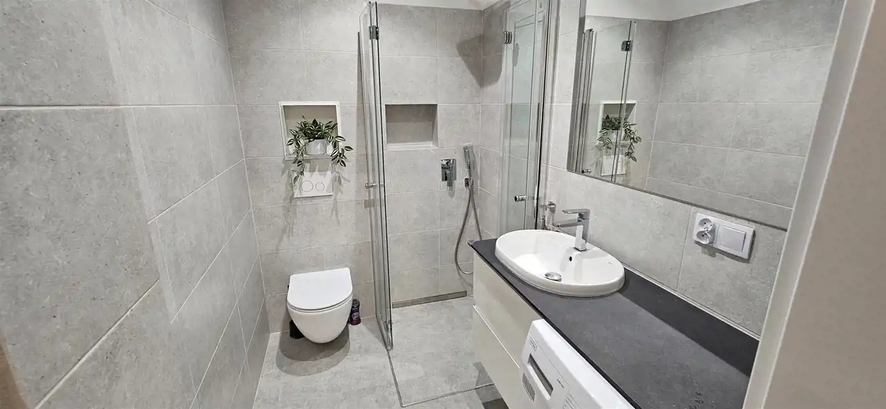 ŁAZIENKA z TOALETĄ: glazura, terakota, pralka;