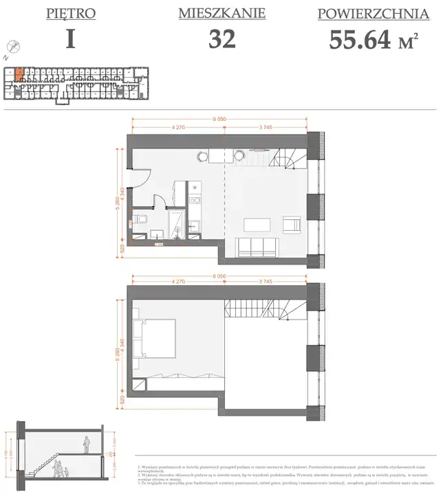 - Rozkład mieszkania 1p piętro