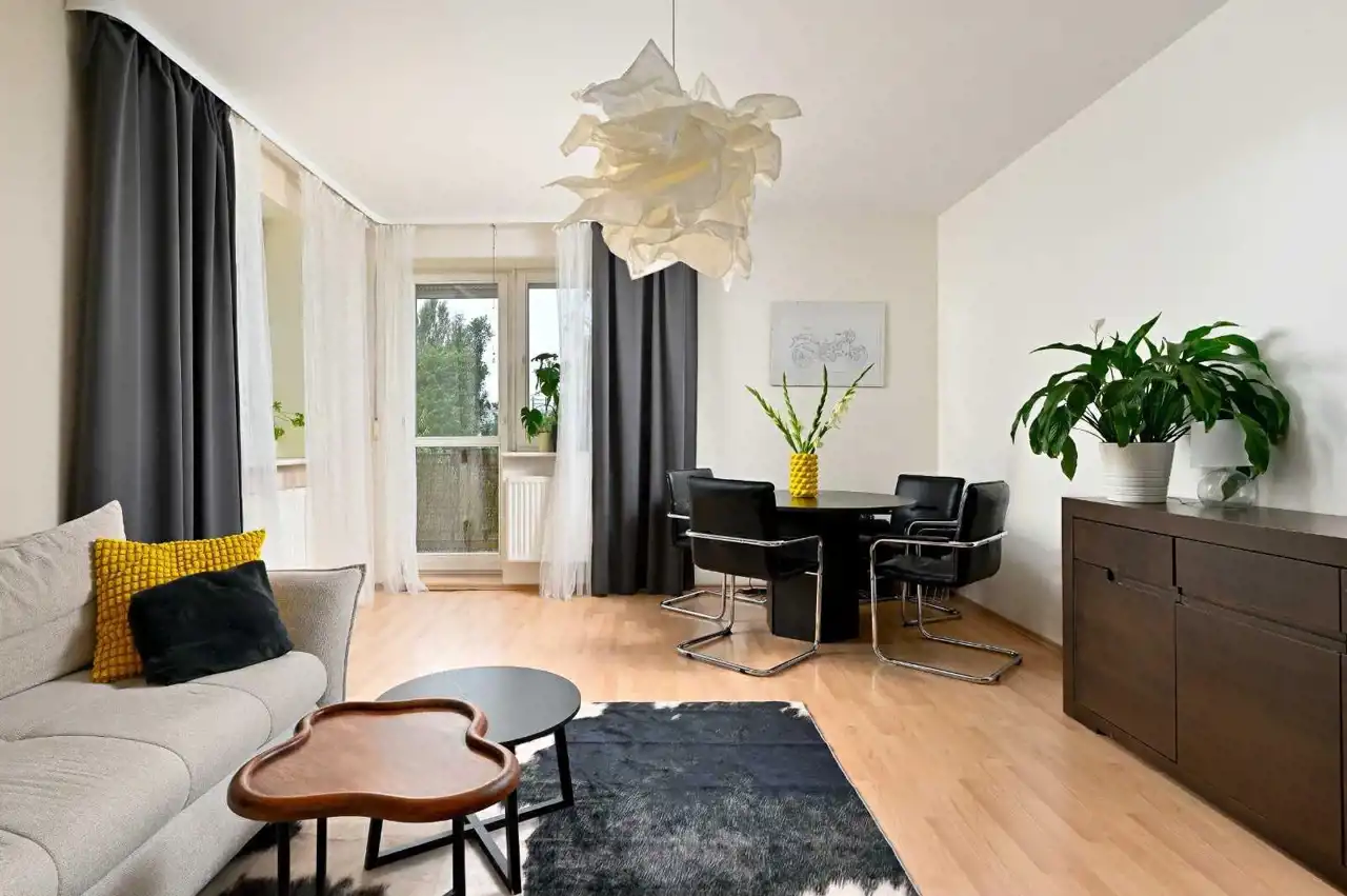 Wnętrze mieszkania jest jasne i przytulne, dzięki oknom usytuowanym na trzy strony świata. Duży salon tworzy przestronną i komfortową atmosferę, a oddzielna kuchnia, wyposażona jest w sprzęt AGD oraz meble w zabudowie. Mieszkanie jest w dobrym stanie, gotowe do zamieszkania – wystarczy wnieść własne rzeczy.