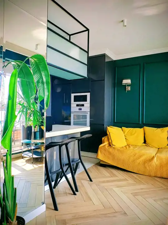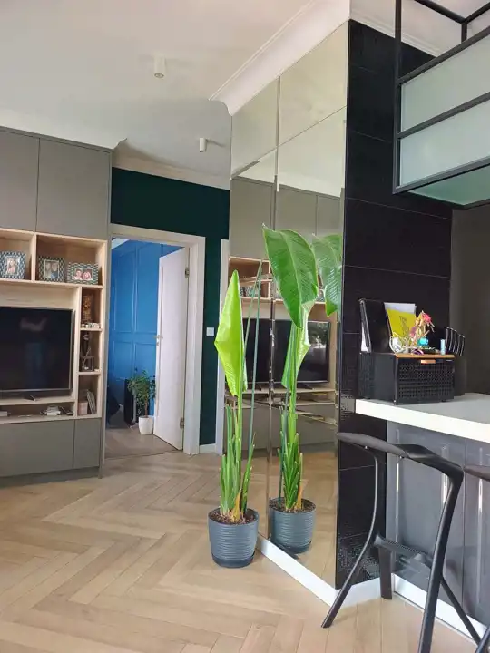 Funkcjonalny układ pomieszczeń. Salon z aneksem kuchennym (w pełni wyposażony) , oddzielnie sypialnia.