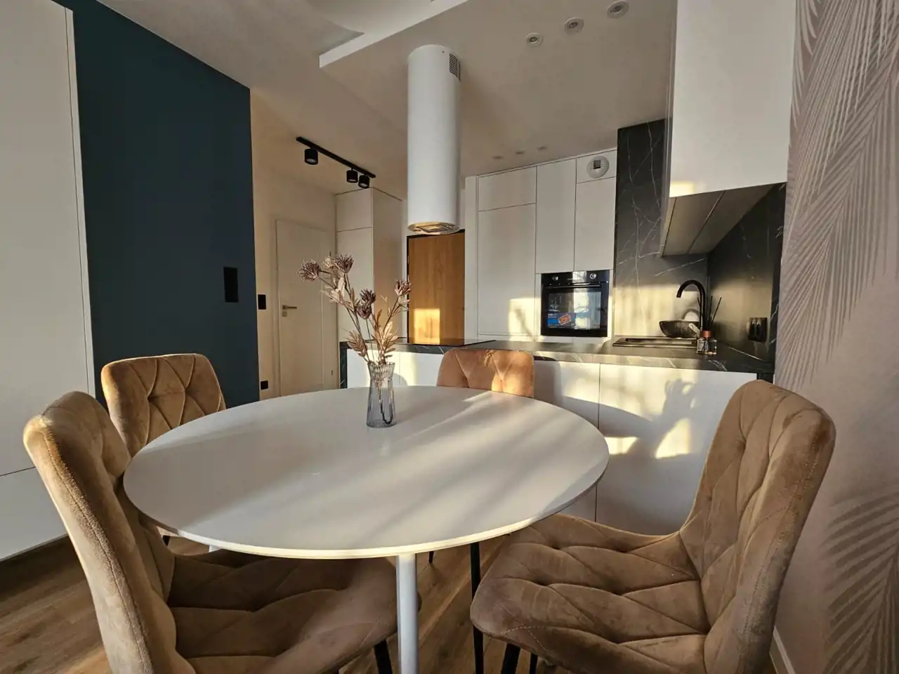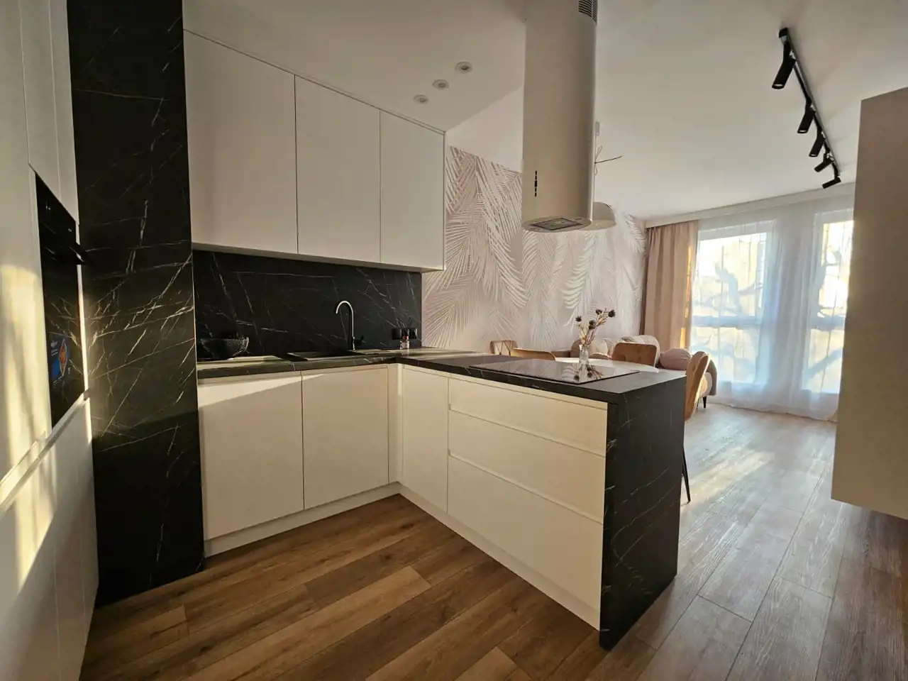 - kuchnia w zabudowie + sprzęty AGD - lodówka, zmywarka, piekarnik, płyta indukcyjna, okap