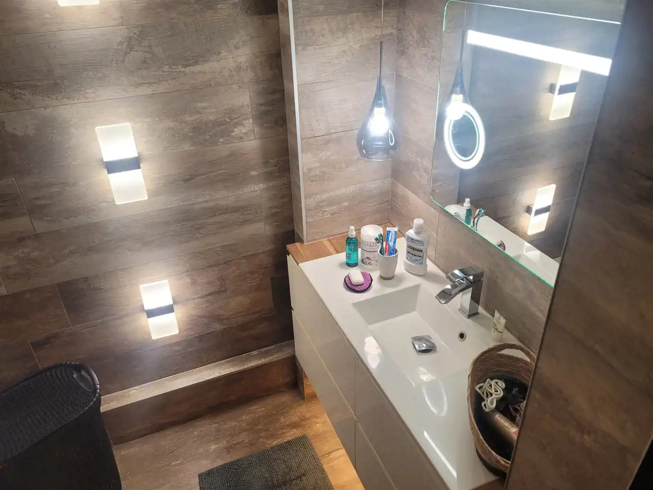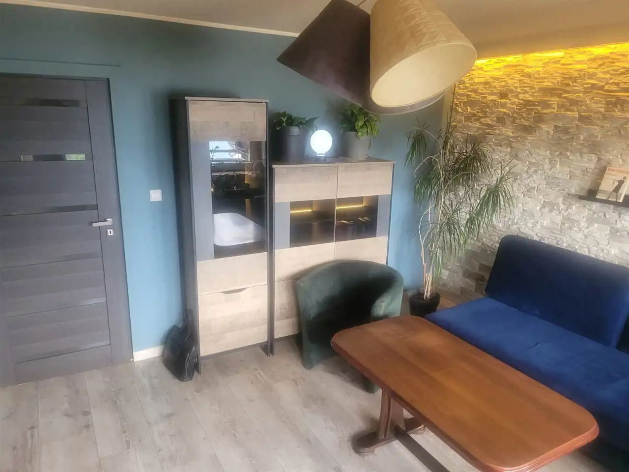 Kuchnia w zabudowie ze sprzętami, zmywarką, lodówką, piekarnikiem, kuchenką gazową i pochłaniaczem powietrza. Meble mogą zostać w mieszkaniu czyli szafa w zabudowie, kanapa z funkcją spania, szafki, regały, w łazience pralka i suszarka.