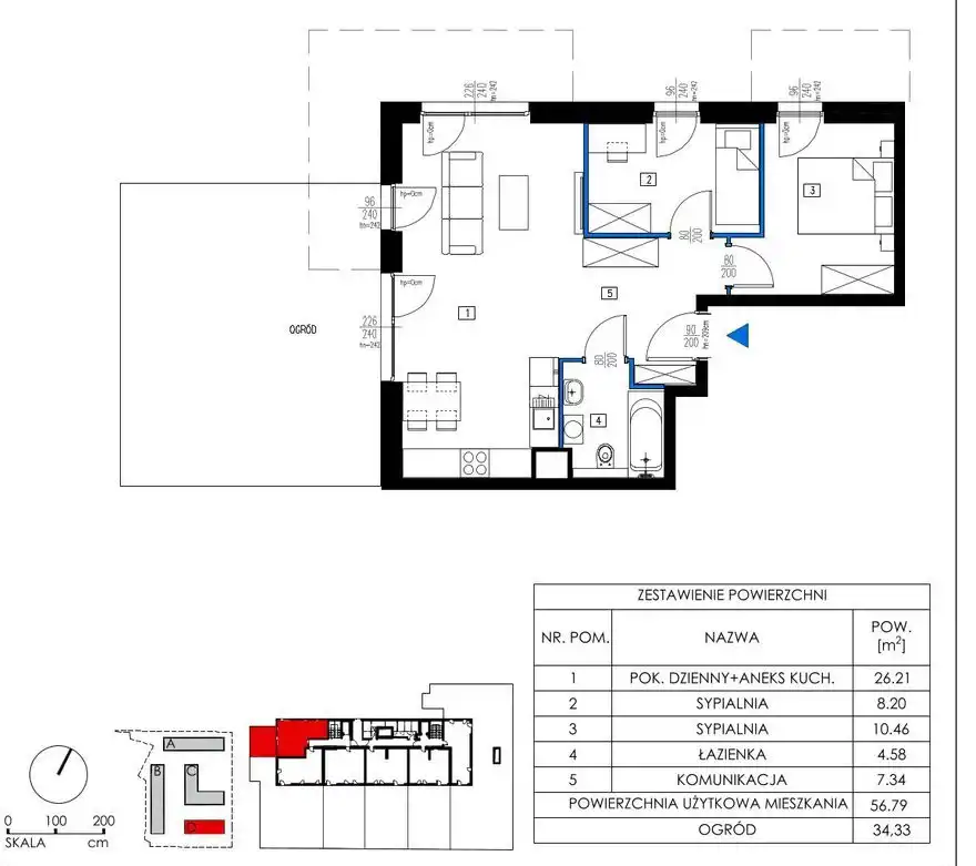 - Charakterystyka mieszkania 56.7 m2, 3 pokoje