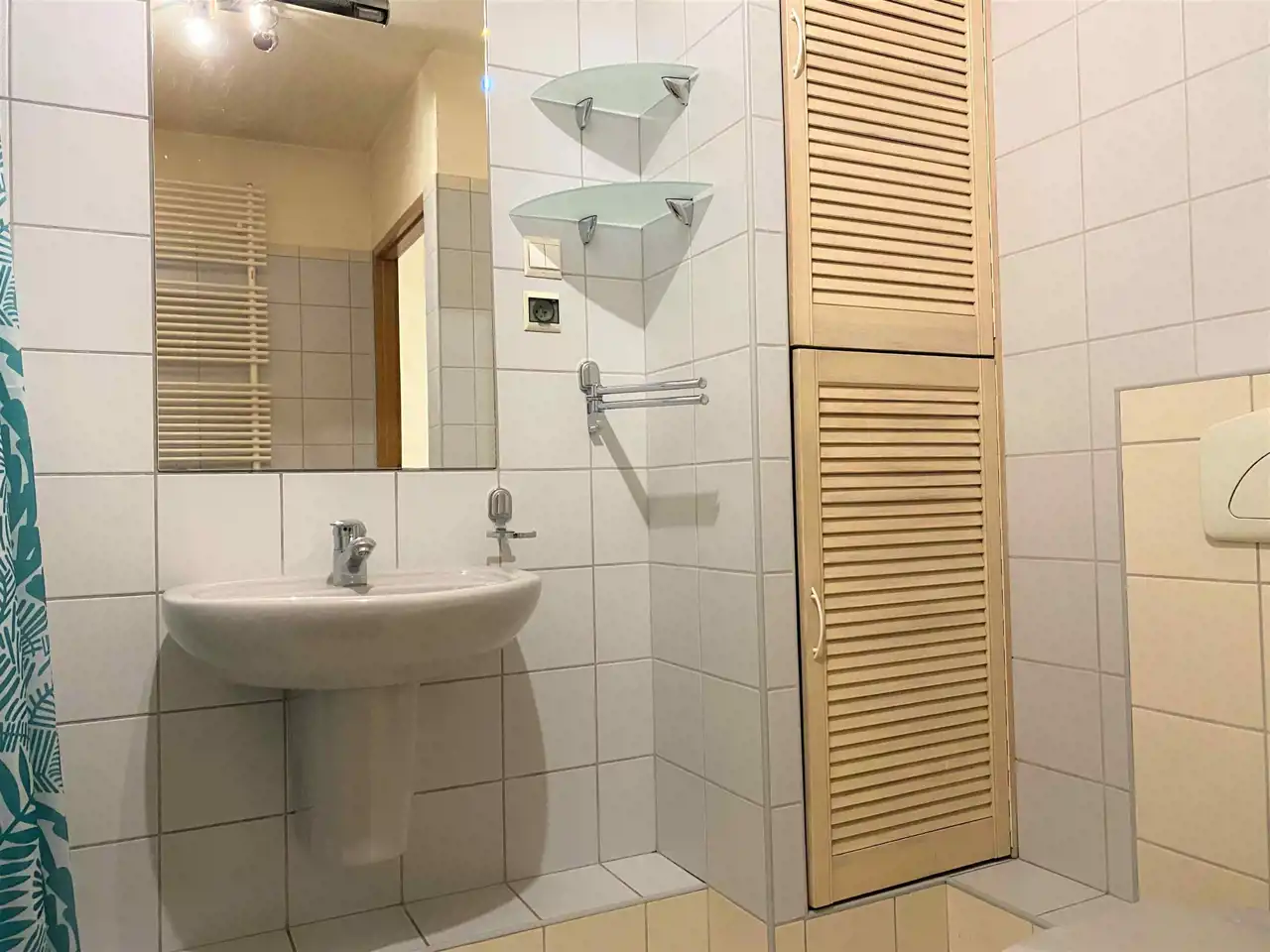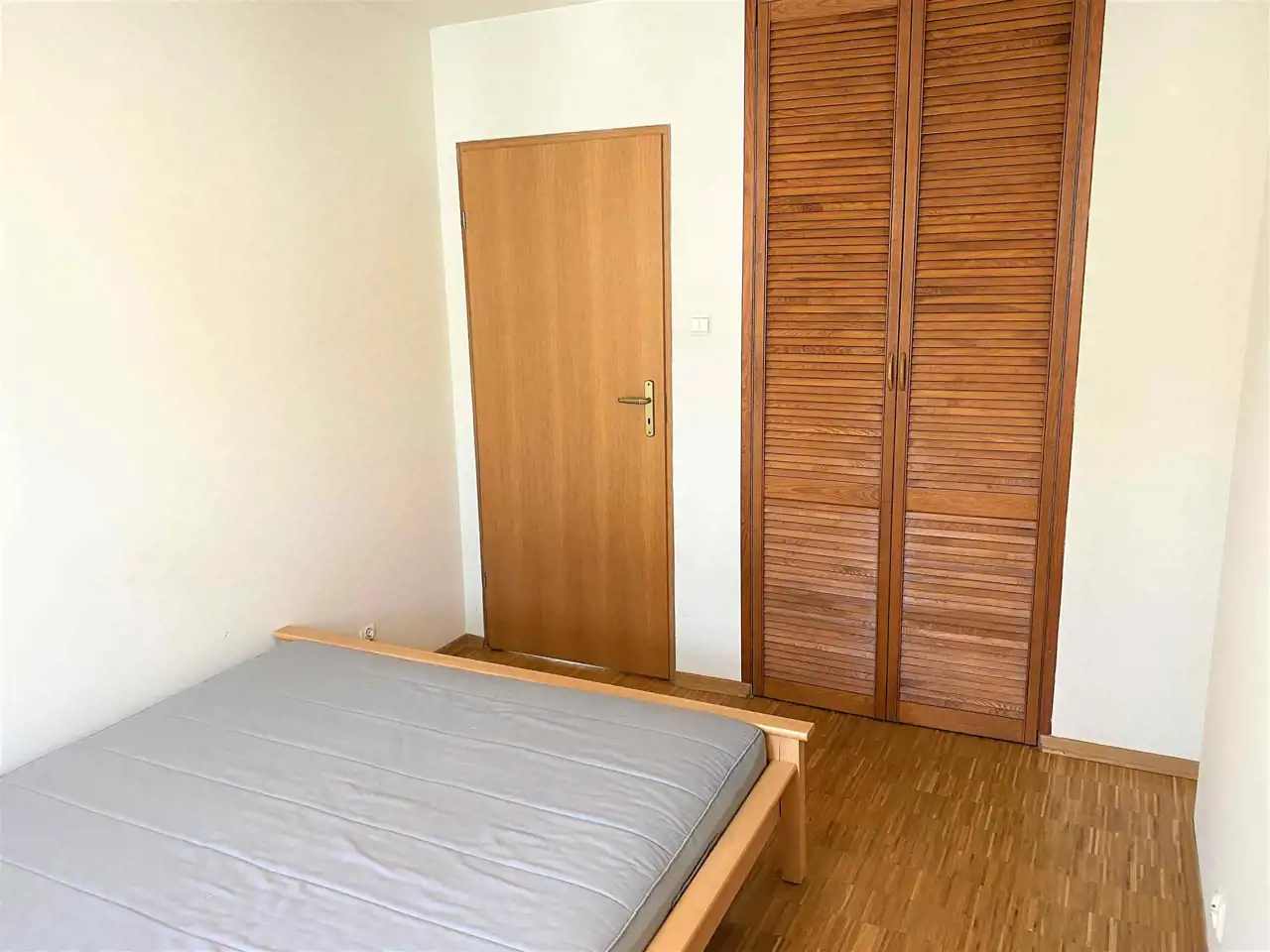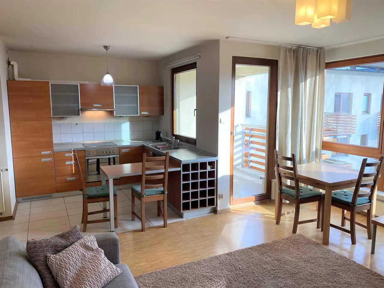 Powierzchnia wynosi 61,5m2 składa się z pokoju dziennego z kuchnią, 2 sypialni, łazienki, przedpokoju, tarasu a także komórki w piwnicy i miejsca garażowego pod budynkiem.