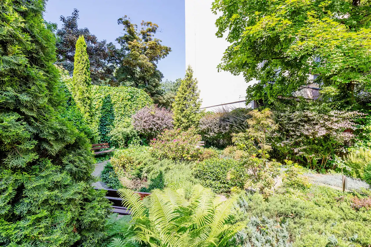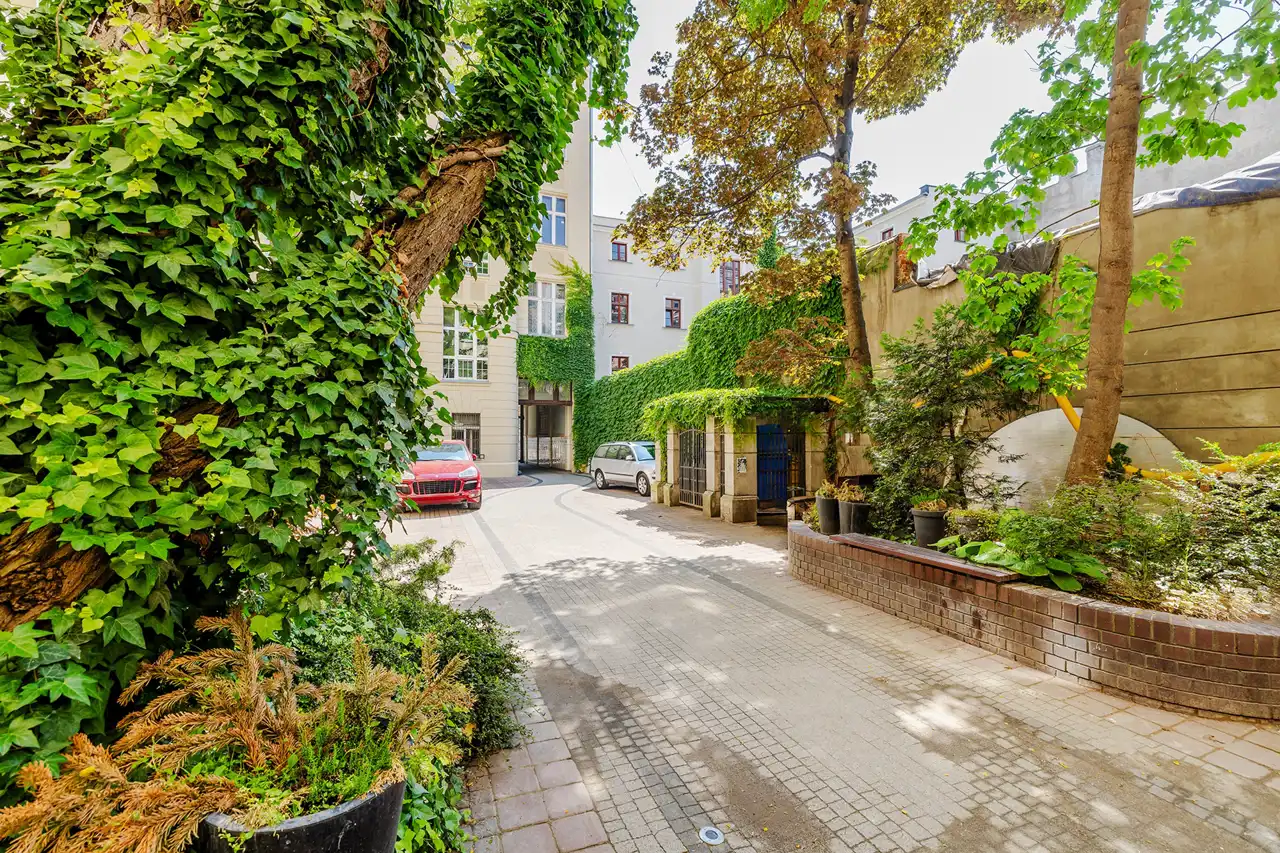 Na podwórzu urządzono ogród, unikat w centrum miasta z miejscem relaksu - ławki, fontanna, pachnące rośliny - dla mieszkańców kamienicy.