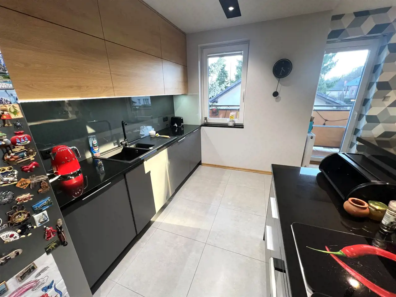 ZORGANIZUJEMY OBSŁUGĘ NOTARIALNĄ !!! UWAGA: Nabywca mieszkania ma zagwarantowany 15% upust na zakupy w marketach LEROY MERLIN w Łodzi - więcej informacji na stronie biura - w zakładce Partnerzy - LOKALIZACJA: dzielnica Górna, ok. ul.Demokratycznej i Rudzkiej Góry, w sąsiedztwie przeważa nowa zabudowa jednorodzinna, blisko przystanki komunikacji miejskiej, szkoła, markety, szybki dojazd do centrum miasta trasą Górna, - WOLNE: od zaraz, prezentacja po kontakcie z pośrednikiem, klucze w biurze, - POZOSTAŁE OPŁATY: czynsz do wspólnoty mieszkaniowej 270 zł - kalkulacja dla 1 osoby mieszkającej, (w tym fundusz remontowy 200 zł i administracja) + gaz w celach grzewczych - ogrzewanie i ciepła woda użytkowa z własnego 2-funkcyjnego pieca gazowego - koszt ogrzewania w sezonie grzewczym ok. 250 zł + woda i prąd wg zużycia + ewentualnie internet, telewizja kablowa. - OPIS POMIESZCZEŃ: - PRZEDPOKÓJ: 5,82 m², szafa 2-drzwiowa z drzwiami przesuwnymi z lustrami, szafa gospodarcza do wstawienia pralki i suszarki, wieszak na płaszcze + szafka na buty, UWAGA: pralka i suszarka na zdjęciu nie są w cenie, będą zabrane, - SALON: 22,6 m², otwarte wejście z przedpokoju, połączony z aneksem kuchennym, wyjście na balkon, w cenie meble i sprzęty widoczne na zdjęciach - oprócz stołu i ławy, - ANEKS KUCHENNY POŁĄCZONY Z SALONEM: 9,4 m², pomiędzy salonem i aneksem wyspa z bufetem, z płytą elektryczną, piekarnikiem i pochłaniaczem, aneks kompletnie umeblowany i wyposażony, duża 2-drzwiowa lodówka z zamrażarką, zmywarka, zlewozmywak z baterią, ekspres do kawy, - SYPIALNIA: 12,60 m², 3-drzwiowa szafa garderoba z drzwiami przesuwnymi, łóżko podwójne, UWAGA: materac nie jest w cenie, będzie zabrany, - GABINET/DRUGA SYPIALNIA: 10 m², kanapa rozkładana, duży regał z półkami, biurko z krzesłem na kółkach, - ŁAZIENKA Z WC: 5,4 m², z oknem, wanna z prysznicem ze szklaną rozkładaną przesłoną, umywalką z szafką podumywalkową, duże lustro wklejone z podświetleniem, sedes podwieszany, duża wbudowana szafka łazienkowa, - STANDARD WYKOŃCZEŃ: część mieszkania obejmująca salon, aneks kuchenny, przedpokój i łazienkę niedawno po remoncie, na podłodze w salonie parkiet w bardzo dobrym stanie, na podłodze w aneksie, przedpokoju i w łazience duże płytki gresowe, w aneksie kuchennym sufit podwieszany z oświetleniem ledowym, ściany gładzie gipsowe, pomalowane i tapeta, w łazience nowoczesna glazura, w sypialni i w gabinecie ściany pomalowane, ale bez gładzi gipsowych, na podłogach parkiet w dobrym stanie - do ewentualnego cyklinowania in lakierowania, - BUDYNEK: kameralny 6-lokalowy, 3-kondygnacyjny, niepodpiwniczony budynek wielorodzinny wybudowany w 2001 r. technologia budowlana murowana, bloczki z betonu komórkowego, stropy gęstożebrowe, dach kopertowy pokryty dachówka bitumiczną, klatka schodowa wyłożona terakotą, działka pod budynkiem powierzchnia 629 m², ogrodzona z nasadzeniami, dojścia i dojazdy wyłożone kostką, w tylnej części działki znajduje sią 6 murowanych garaży, po jednym dla każdego mieszkania, brama wjazdowa na posesję przesuwna na pilota, - ROZKŁAD: pełen rozkład, sypialnia, gabinet, łazienka - z drzwiami, salon połączony z aneksem kuchennym z otwartym przejściem z przedpokoju, - BALKON: 5,8 m², wyłożony terakotą, od strony płd-zach., - OKNA - PCV / DRZWI: zewnętrzne antywłamaniowe, drzwi wewnętrzne wymienione przy remoncie, z przeszkleniami, - WYSTAWA OKIENNA: zach, płd. pn-zach., - MEDIA / OPOMIAROWANIE: wszystkie media opomiarowane, łącznie z ogrzewaniem, - DOJAZD: asfalt, - GARAŻ / PARKING: garaż murowany w szeregu 6 garaży usytuowanych w tylnej części działki, wymiary 2,84x5,80m, wysokość bramy wjazdowej 2 m, brama wjazdowa uchylna na pilota, oświetlenie elektryczne, - PIWNICA / KOMÓRKA LOKATORSKA: brak, - UWAGA ! Oferty prezentowane na naszych stronach nie stanowią oferty w rozumieniu Kodeksu Cywilnego, a są jedynie zaproszeniem do rokowań. Podane dane mają charakter wyłącznie informacyjny i mogą odbiegać od stanu faktycznego. Opis obiektu został sporządzony na podstawie informacji przekazanych przez Oferującego. Oferta może być już nieaktualna. Prosimy o telefon. |