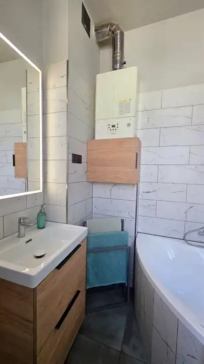 Ogrzewanie i ciepła woda są z pieca gazowego dwufunkcyjnego kondensacyjnego, dzięki czemu jest energooszczędnie. Piec ma 4 lata plus jeszcze 1 rok gwarancji.