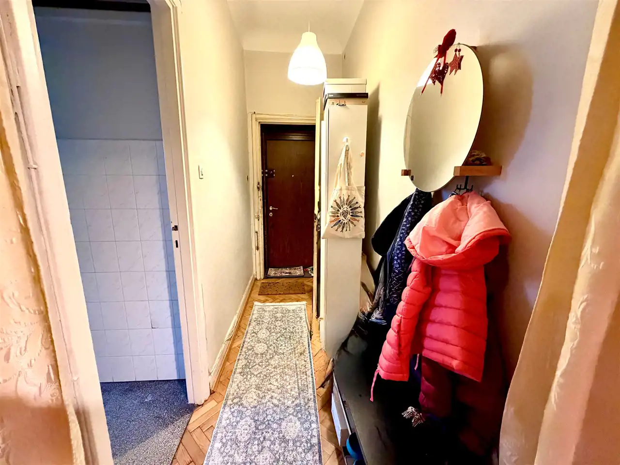 Są tutaj trzy słoneczne pokoje, osobna kuchnia, łazienka, hol i korytarz. Okna nowe. Balkon na południe. Łazienka z oknem po remoncie - nowa glazura i terakota, nowa kabina prysznicowa, umywalka, bidet, szafki. Lokal z centralnym ogrzewaniem i ciepłą wodą z sieci miejskiej. Na podłogach w pokojach parkiety w bardzo dobrym stanie. Do remontu jest kuchnia. W holu ogromna szafa pod wymiar.