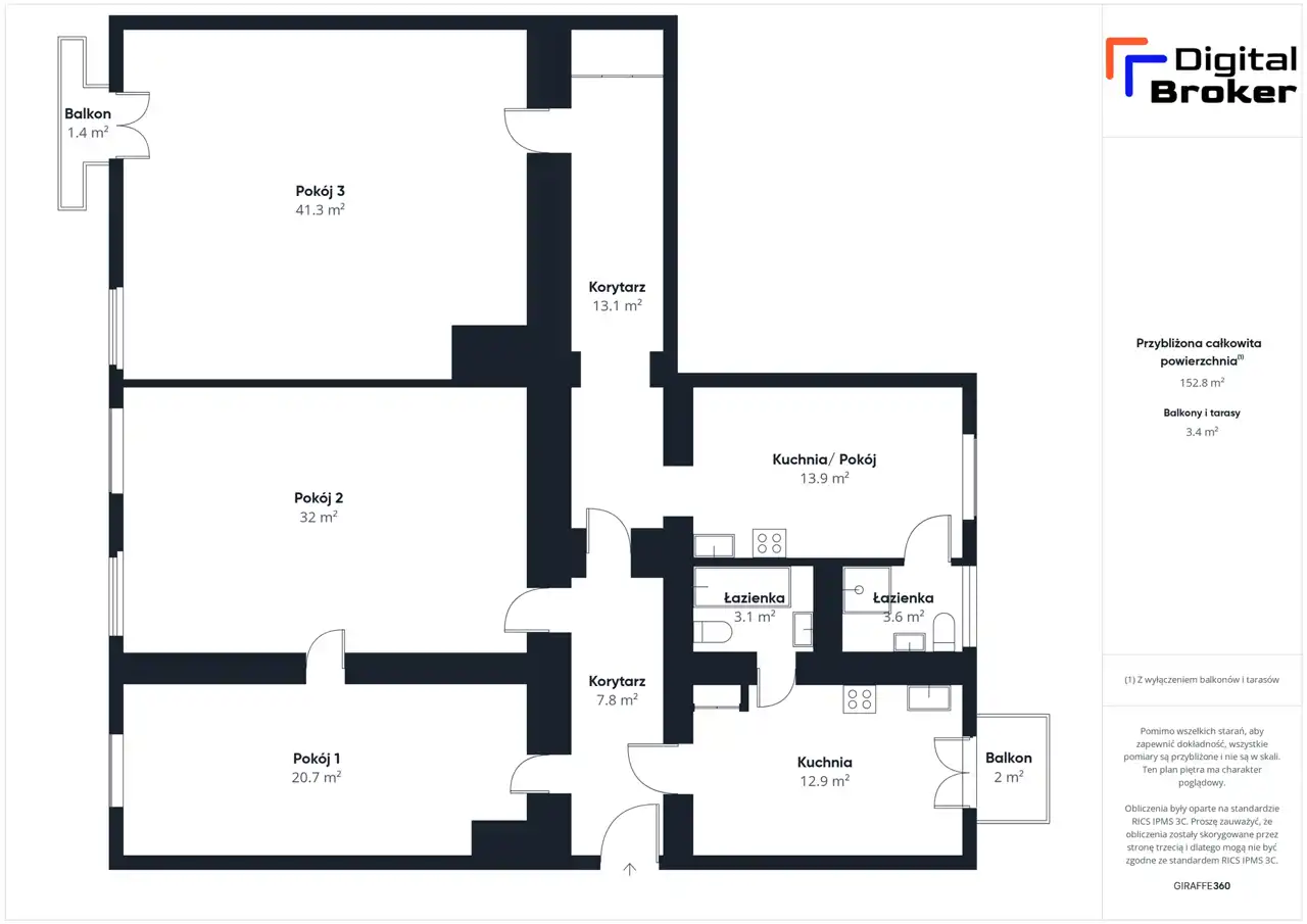 - Charakterystyka mieszkania 152.82 m2, 5 pokoi