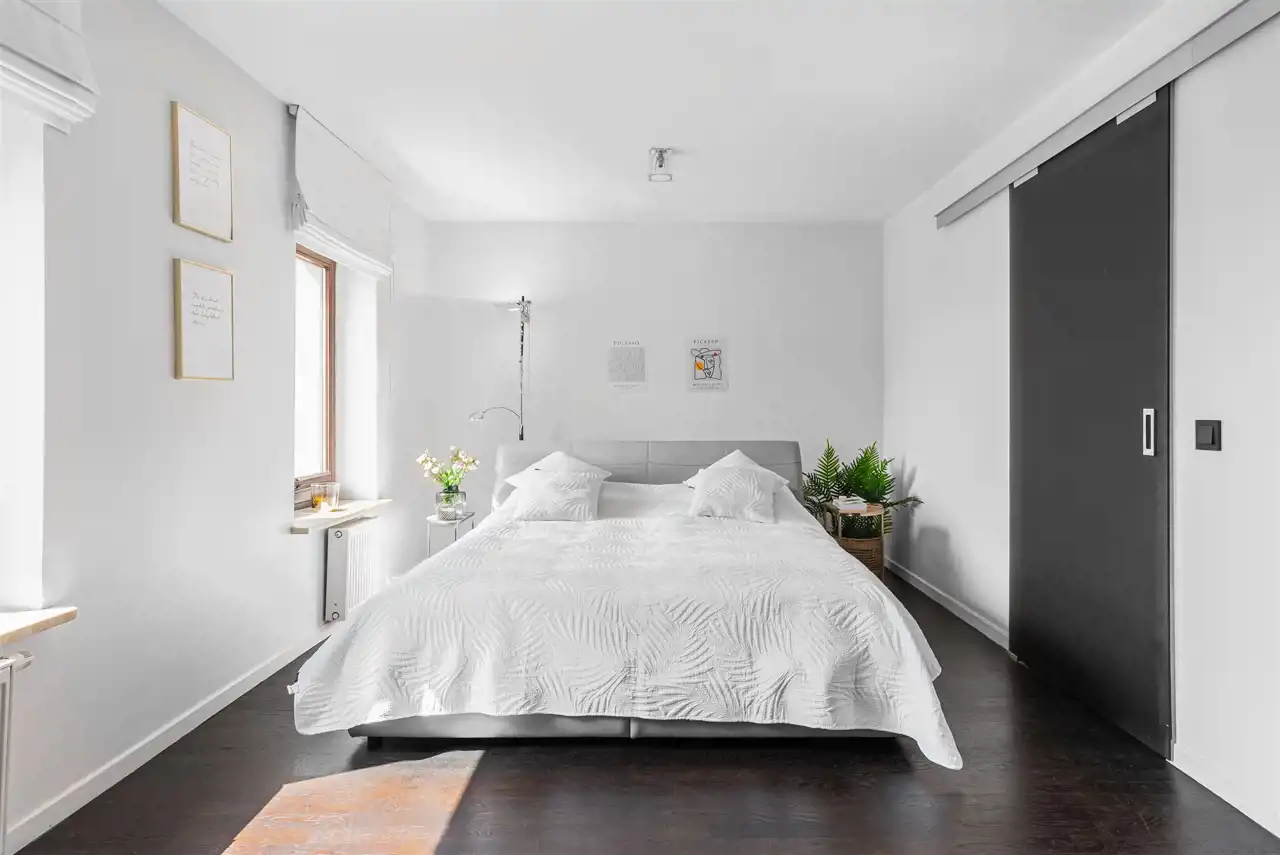 - sypialnia połączona z pokojem kąpielowym ( wanna, prysznic)