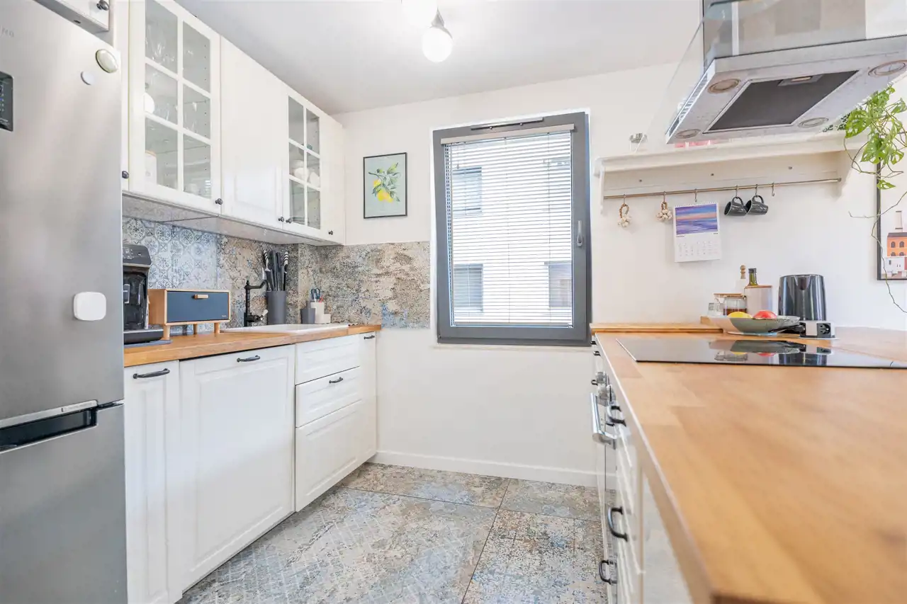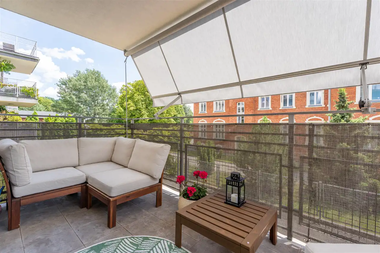 W mieszkaniu nowe podłogi drewniane, nowe okna trzyszybowe, klimatyzacja oraz markiza balkonowa. Doskonały rozkład z dużym tarasem, obszerną przestrzenią zapewniająca komfort lokatorom.