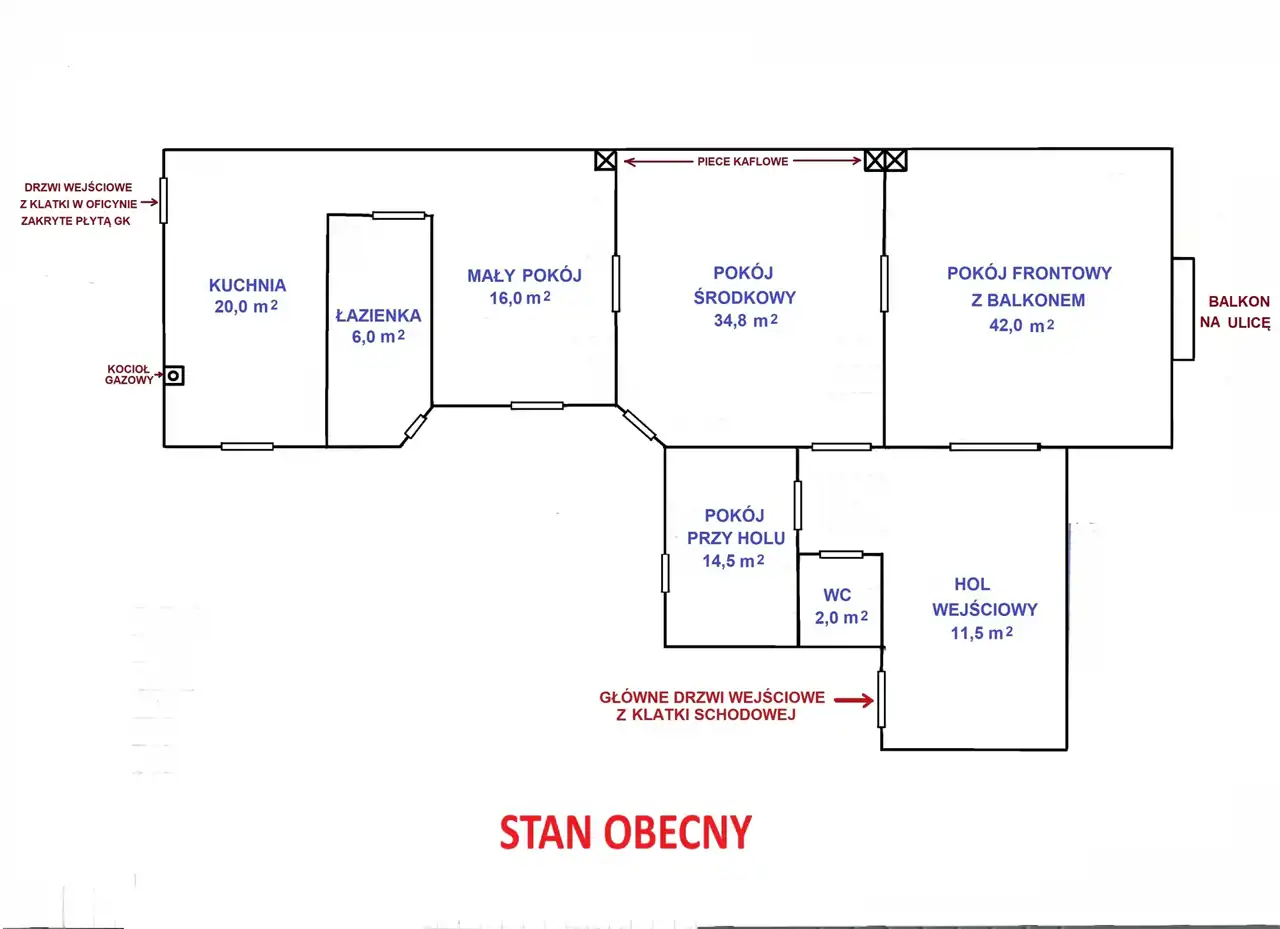 - ROZKŁAD: nie, pokoje w amfiladzie, pokój przy holu osobne wejście - UWAGA: przedstawiona propozycja nowej adaptacji na cele mieszkalne pod warunkiem zmiany usytuowania pieca gazowego np. do łazienki - do skonsultowania z architektem i kominiarzem !
