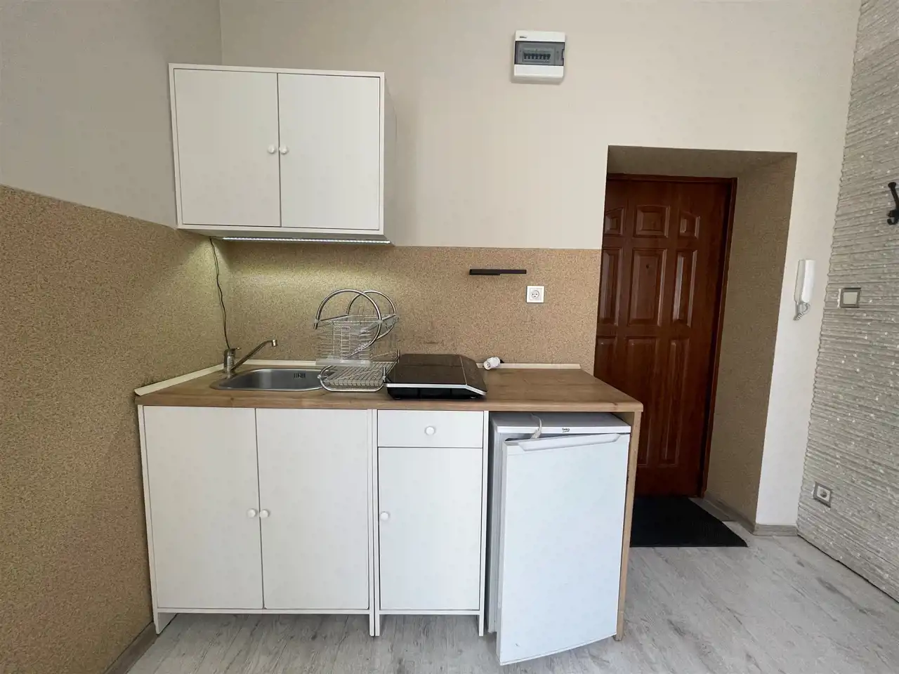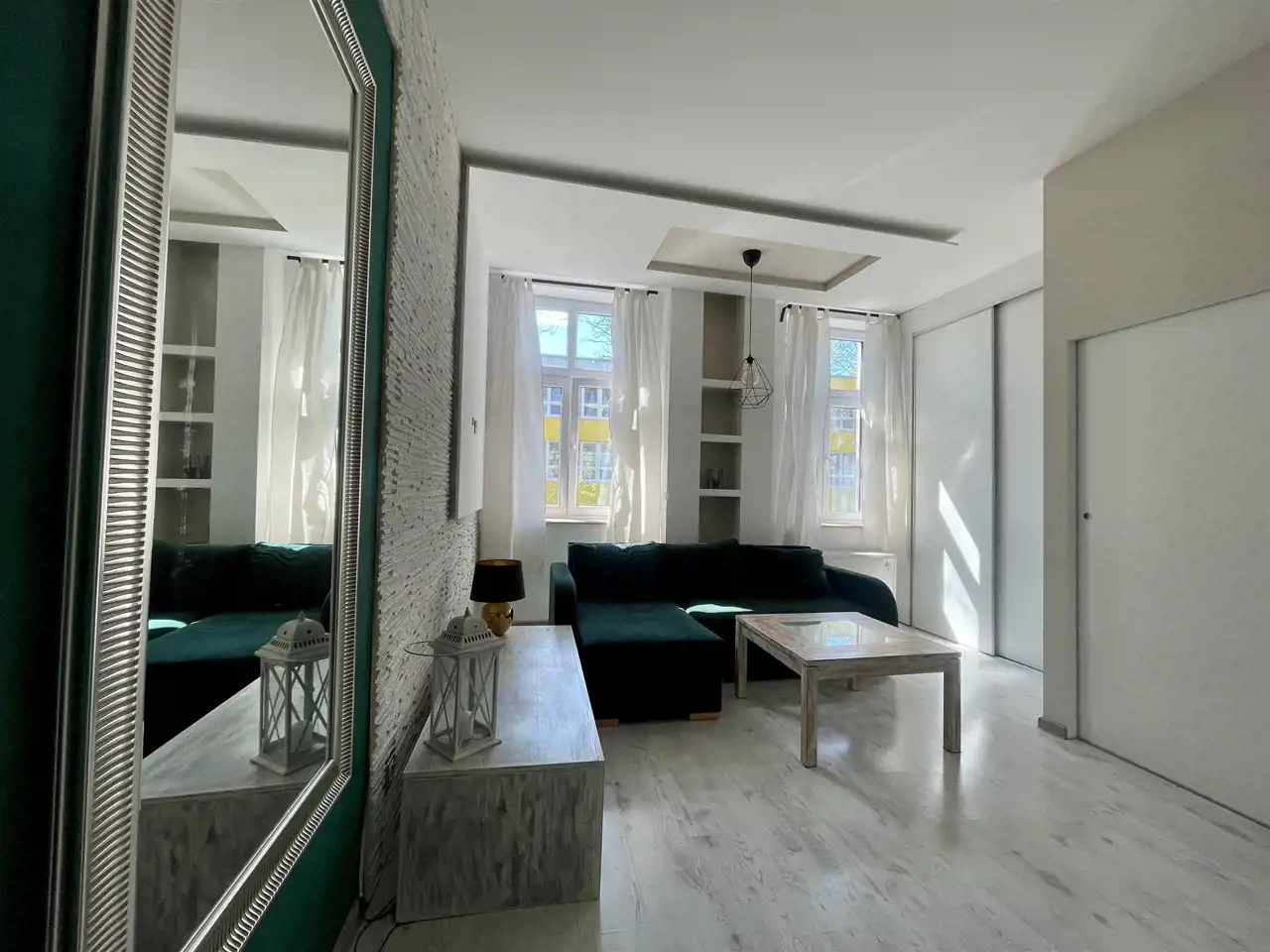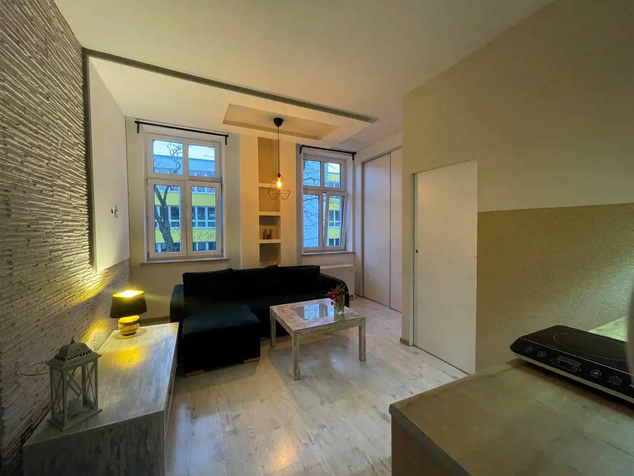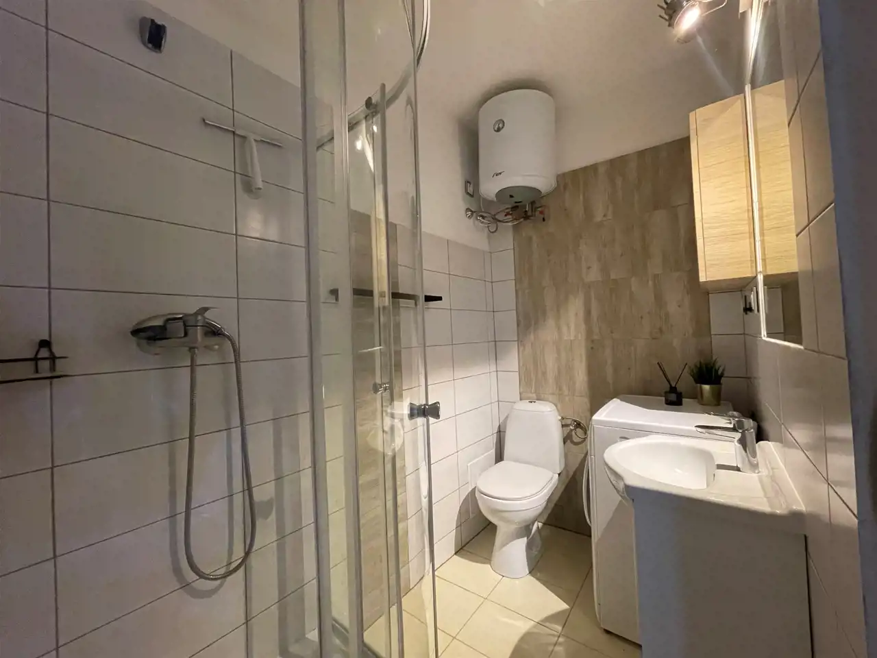 Kawalerka składa się z salonu z aneksem kuchennym, wyposażonym w lodówkę i płytę indukcyjną, w salonie znajduje się duża szafa. Łazienka wyposażona w prysznic, umywalkę pralkę i wc. Kawalerka umeblowana i wyposażona, w sztućce, szklanki, garnki, suszarkę, grill elektryczny itd. Znajduje się w kameralnej kamienicy na zamkniętym terenie. Obiekt monitorowany w środku,oraz przed, dzięki czemu monitoring obejmuje nam zaparkowane przed kamienicą samochody.