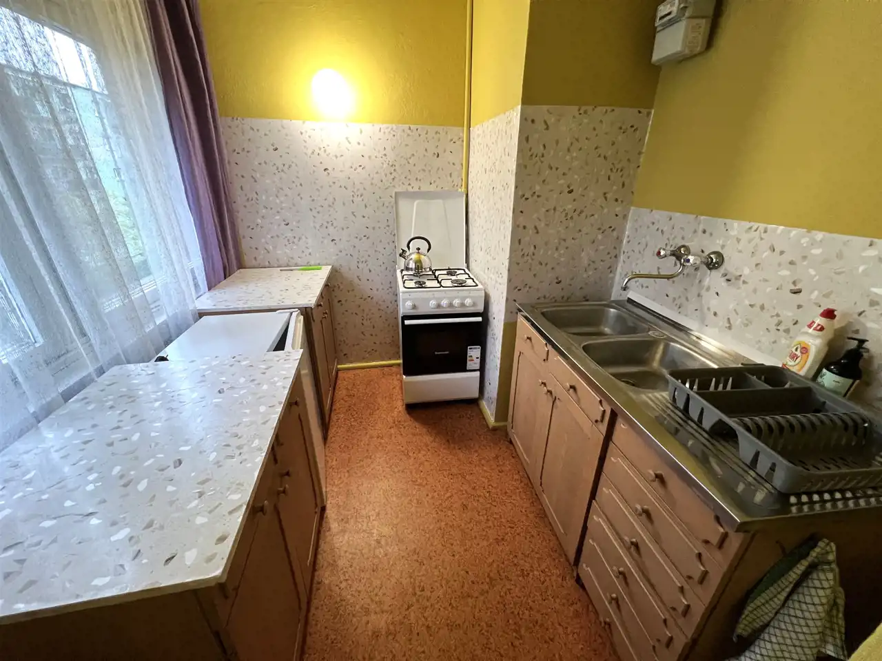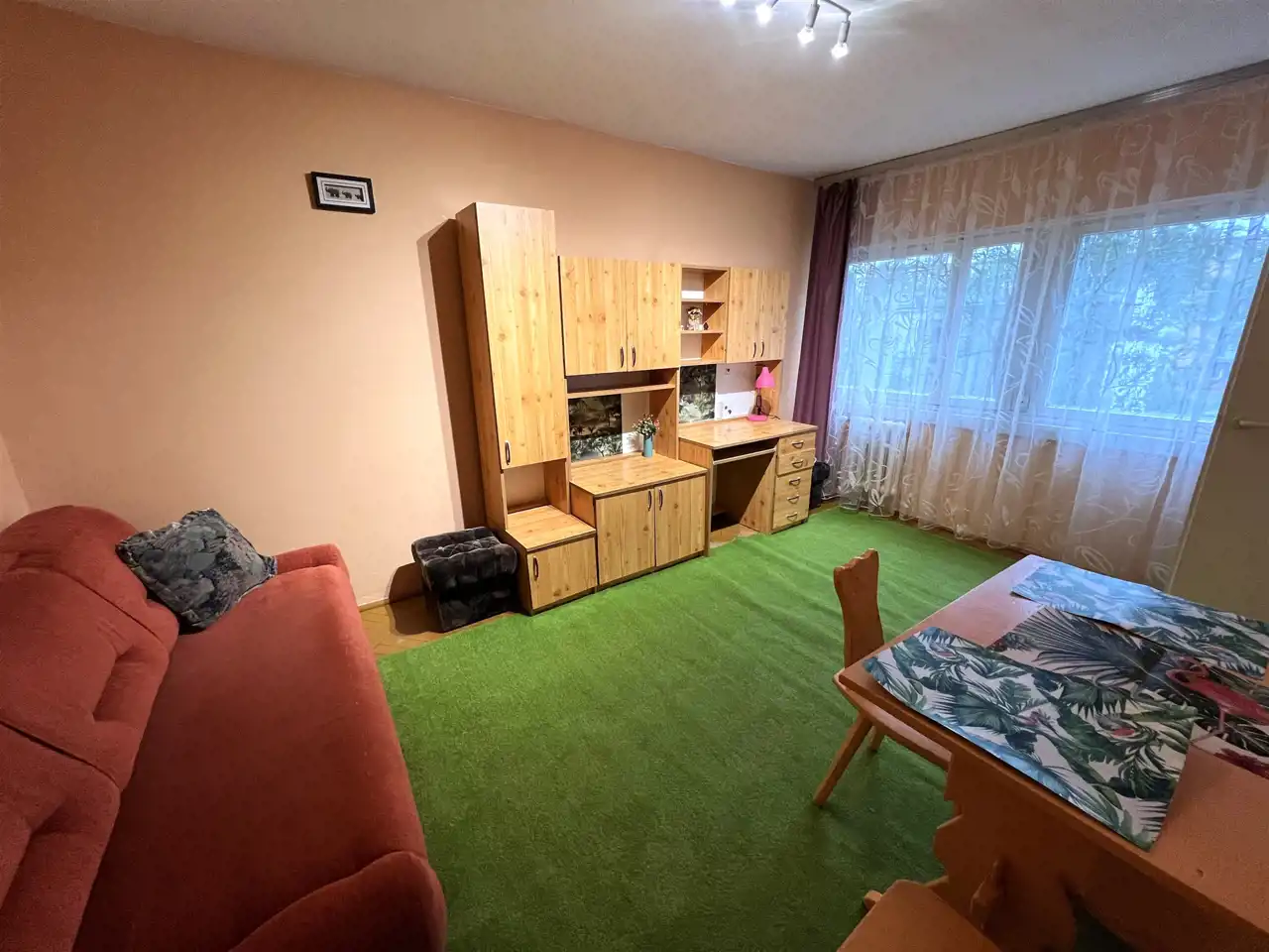 - POKÓJ: 14,2 m2, wersalka rozkładana, stół + 2 krzesła, zestaw meblowy z biurkiem i krzesłem, pufa - z pokoju wejście do kuchni,