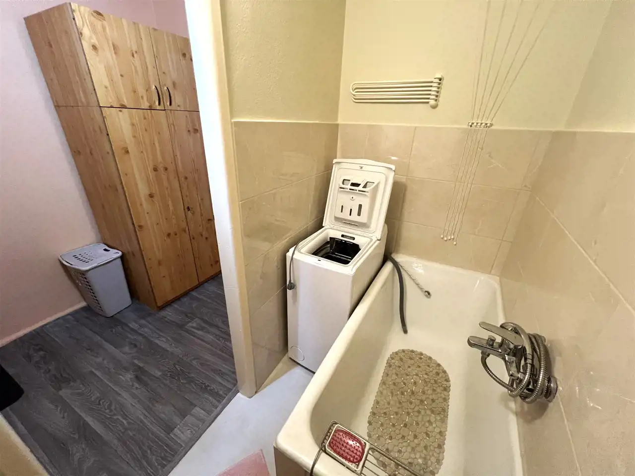 - ŁAZIENKA Z WC: 2,7 m2, wanna z prysznicem, sedes, pralka, umywalka, rozkładany system do suszenia rzeczy,