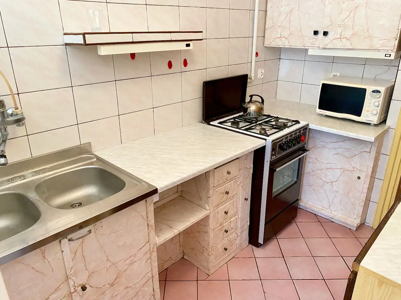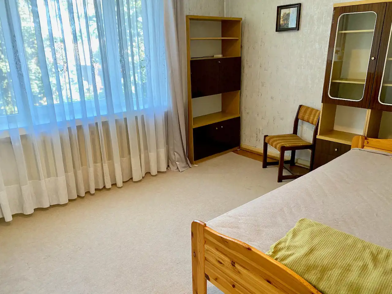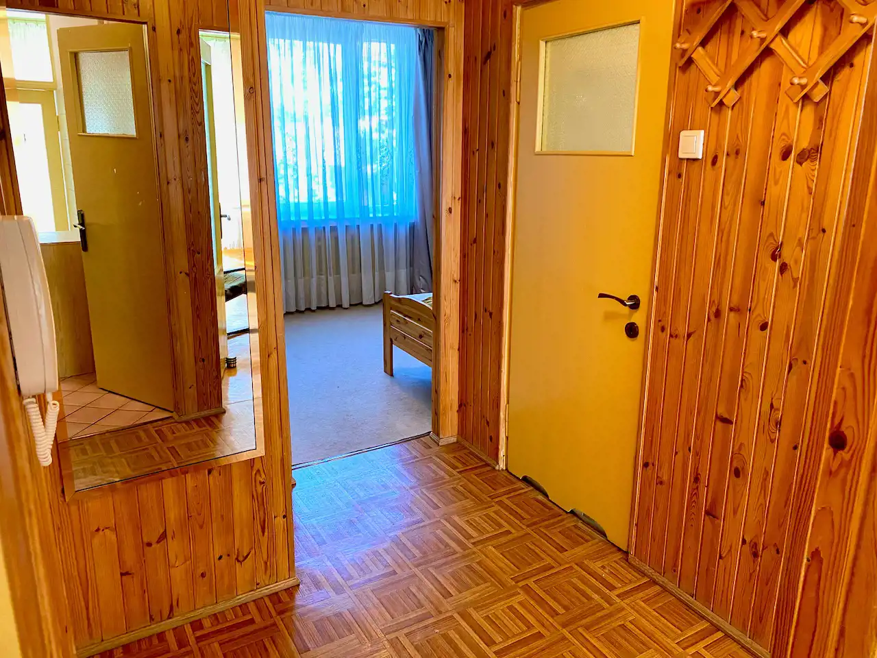Lokal to dwie samodzielne sypialnie, oddzielna kuchnia, łazienka i korytarz. W większym pokoju jest rozkładana kanapa, fotel, ława, regał i duża szafa wnękowa. W mniejszym pokoju łóżko 1-osobowe, fotel i komody. W kuchni szafki pod wymiar, lodówka, zmywarka nablatowa i drobne wyposażenie. Łazienka razem z toaletą - glazura i terakota, wanna, pralka. Przedpokój z szafą wnękową. Klatka schodowa z domofonem, możliwość podłączenia Internetu i telewizji kablowej.